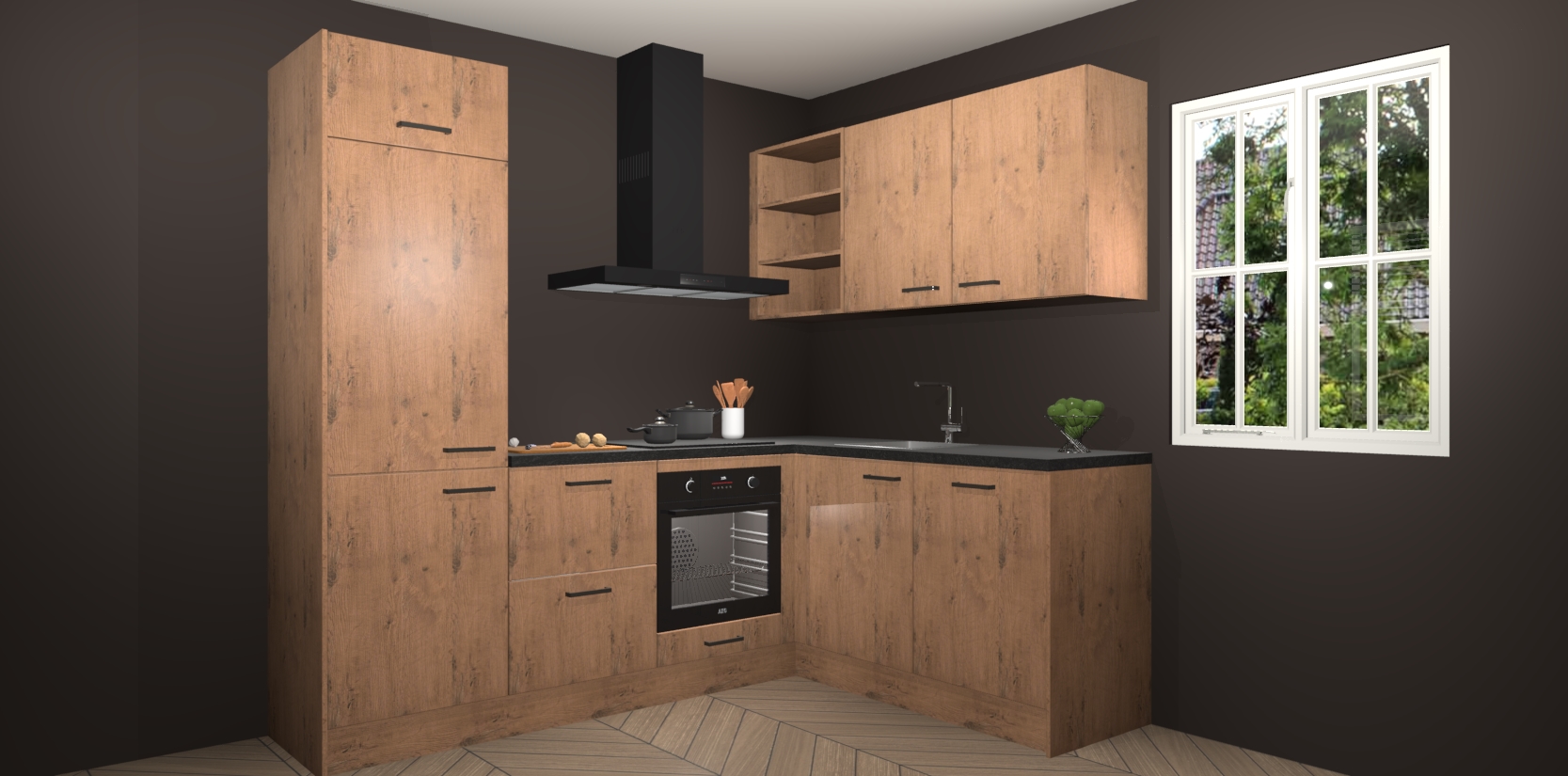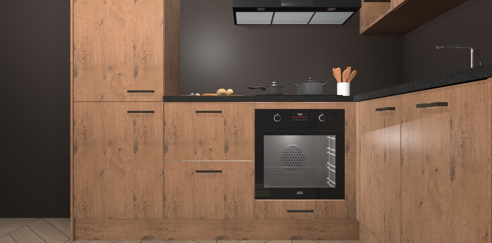 Dit model biedt u voldoende opbergruimte en vijf ingebouwde apparaten: een oven, inductiekookplaat, afzuigkap, vaatwasser en koelkast. Deze apparaten kunnen gemakkelijk worden geüpgrade naar AEG nadat u besteld heeft. De verschillende laden en kastjes bevatten softclose-deuren waardoor ze gezellig dichtvallen met een geruststellend helemaal geruisloos geluid. En dat is nog niet alles! We garanderen ook dat de prijs altijd laag blijft - dus haal nu uw Astoria Eiken keuken Krakau terwijl het kan.