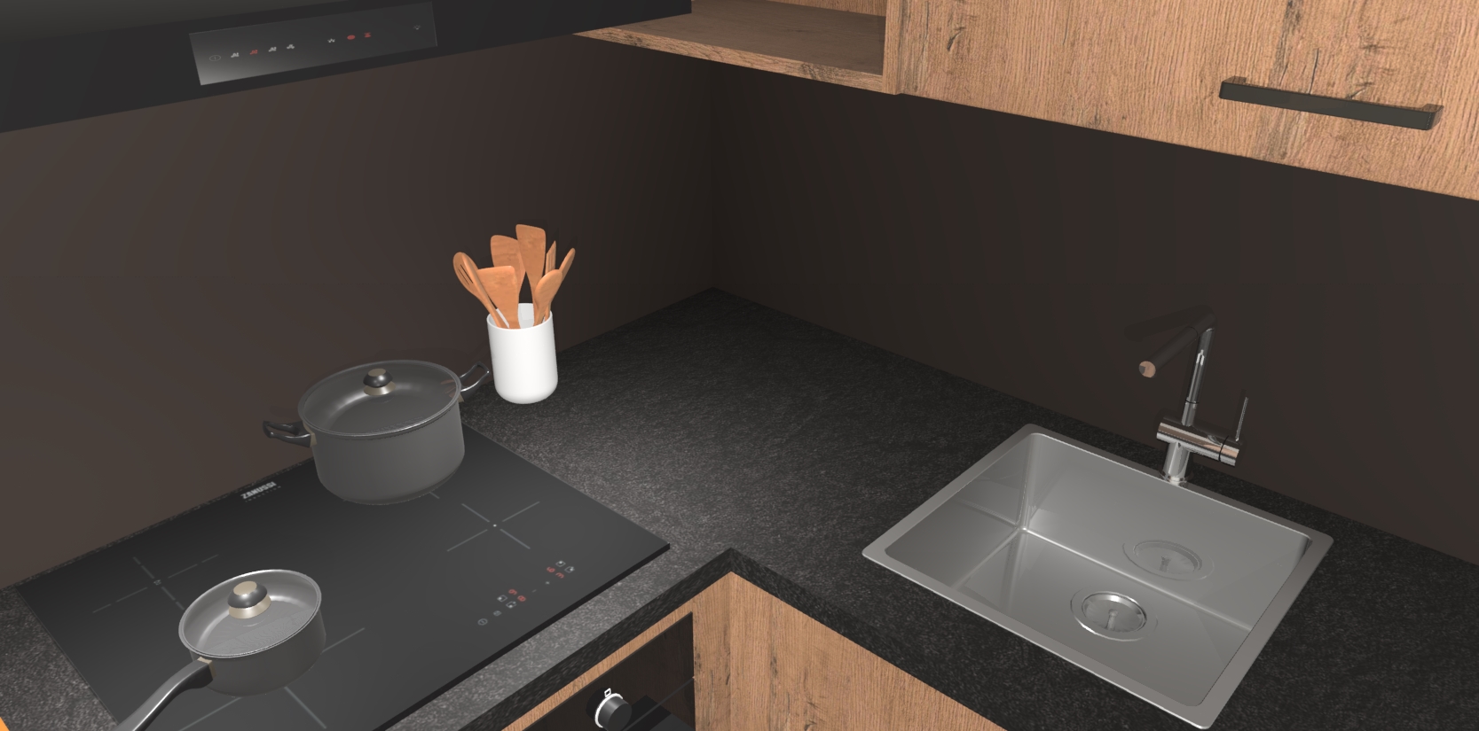 - Uitsparing van kookplaat, spoelbak en kraan dient u zelf te verzorgen.