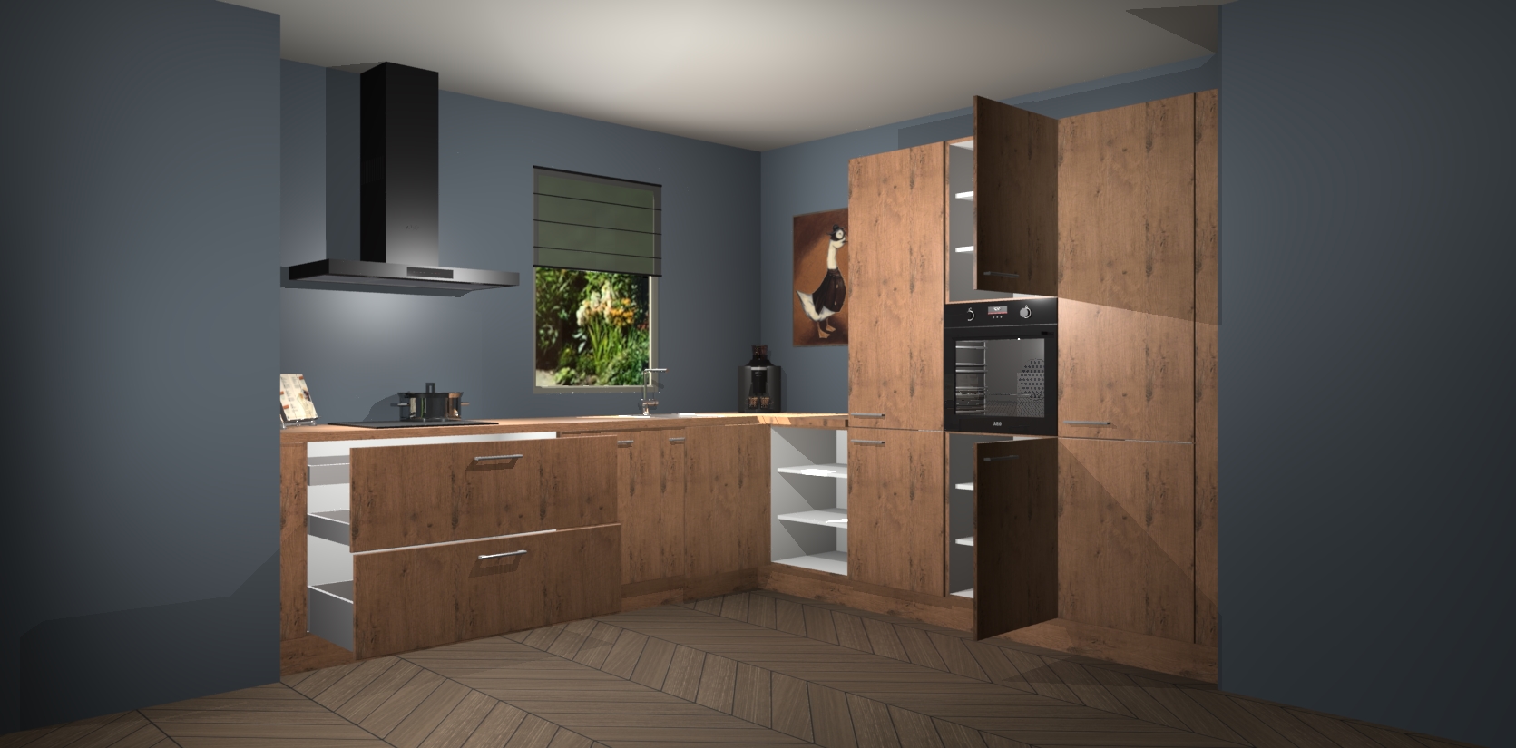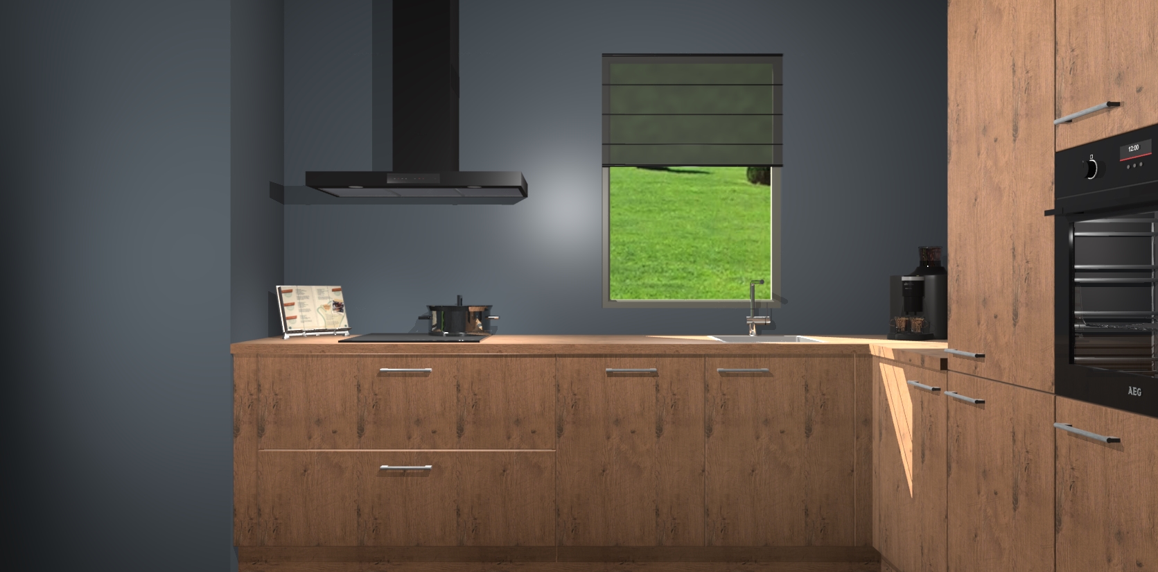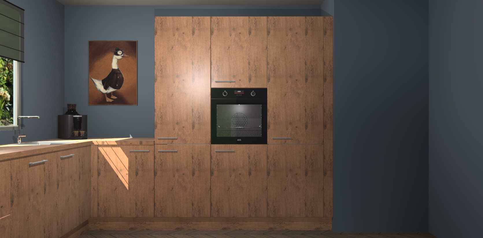 Welkom bij de Astoria Eiken keuken Laos. Deze prachtige keuken zal de komende jaren het middelpunt van de belangstelling in uw huis zijn. Uitgerust met vijf inbouwapparaten komt u nooit kookgereedschap tekort. Bovendien geeft de warme houtlook elke ruimte een uitnodigende en tijdloze uitstraling.
