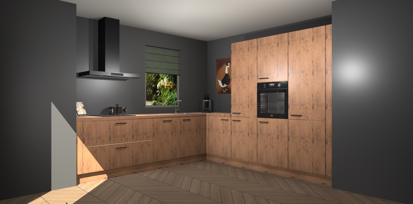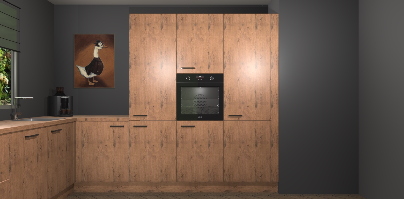 Welkom bij de Astoria Eiken keuken Laos. Deze prachtige keuken zal de komende jaren het middelpunt van de belangstelling in uw huis zijn. Uitgerust met vijf inbouwapparaten komt u nooit kookgereedschap tekort. Bovendien geeft de warme houtlook elke ruimte een uitnodigende en tijdloze uitstraling.