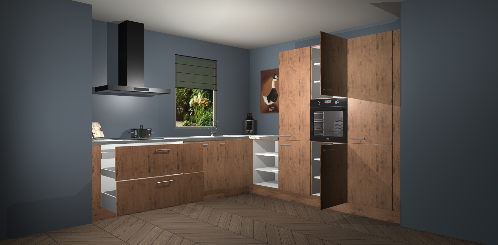 Welkom bij de Astoria Eiken keuken Laos. Deze prachtige keuken zal de komende jaren het middelpunt van de belangstelling in uw huis zijn. Uitgerust met vijf inbouwapparaten komt u nooit kookgereedschap tekort. Bovendien geeft de warme houtlook elke ruimte een uitnodigende en tijdloze uitstraling.