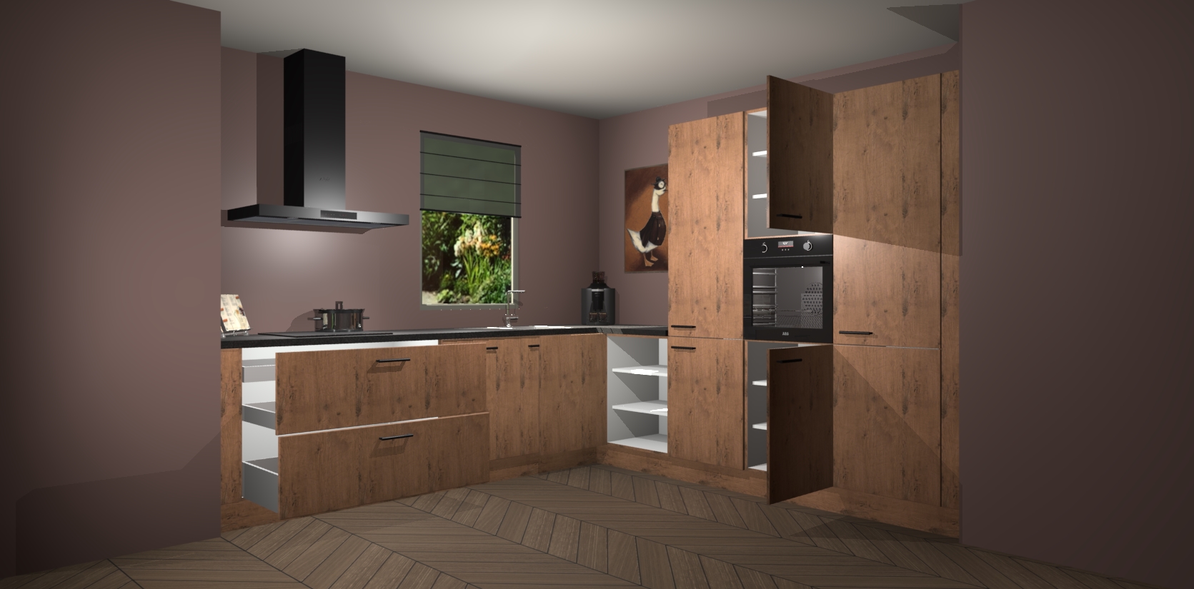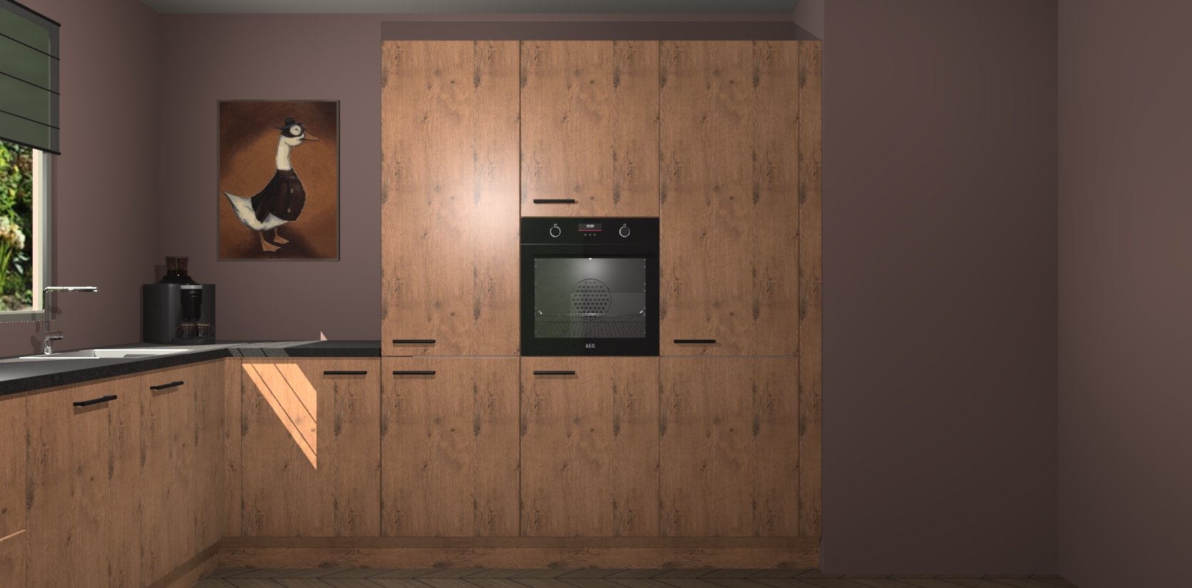 Welkom bij de Astoria Eiken keuken Laos. Deze prachtige keuken zal de komende jaren het middelpunt van de belangstelling in uw huis zijn. Uitgerust met vijf inbouwapparaten komt u nooit kookgereedschap tekort. Bovendien geeft de warme houtlook elke ruimte een uitnodigende en tijdloze uitstraling.