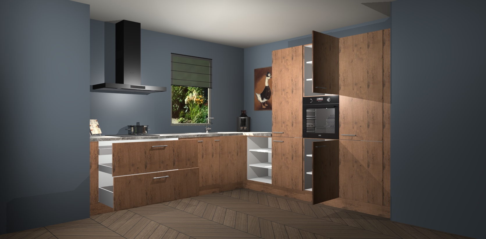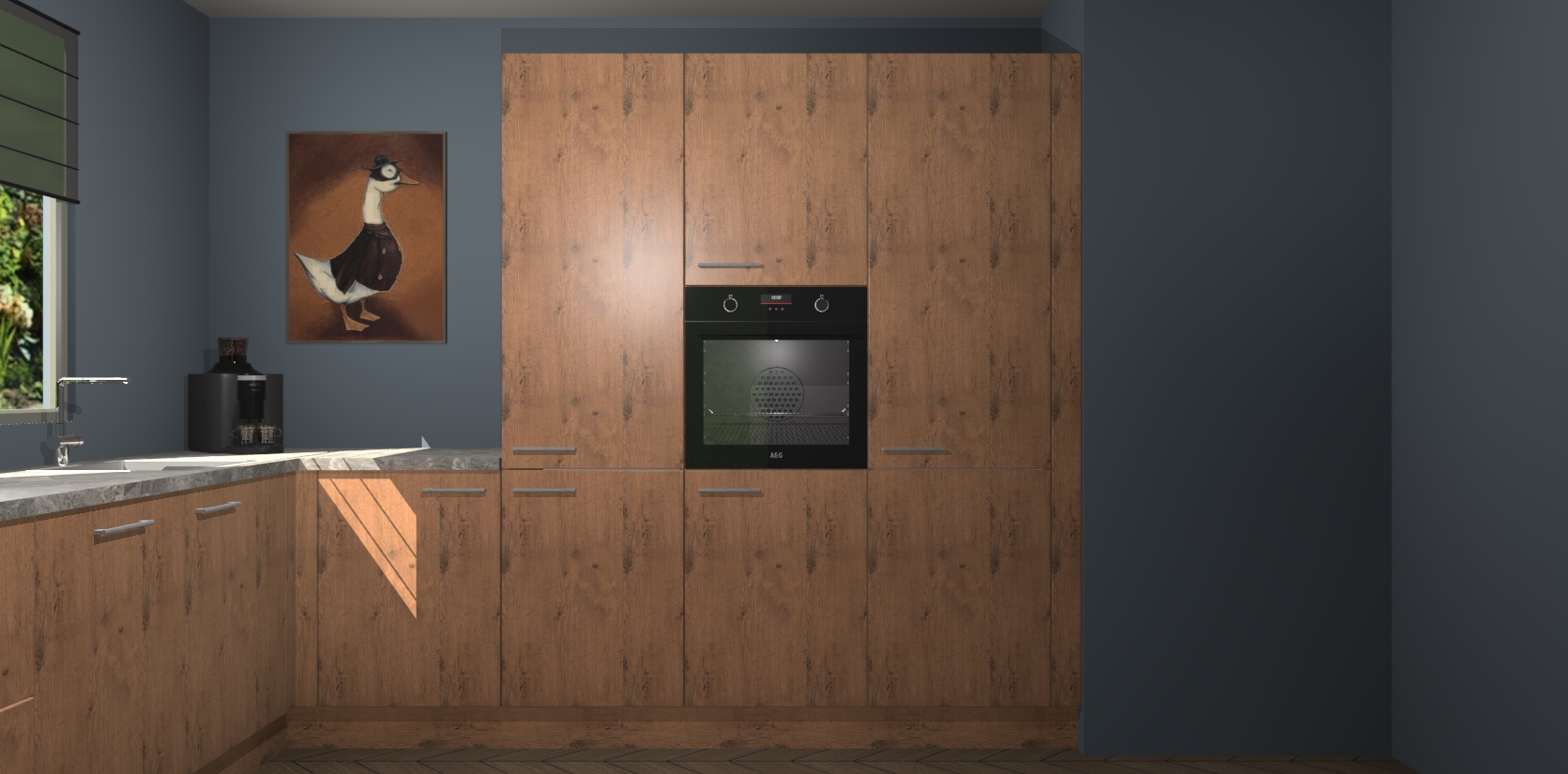 Welkom bij de Astoria Eiken keuken Laos. Deze prachtige keuken zal de komende jaren het middelpunt van de belangstelling in uw huis zijn. Uitgerust met vijf inbouwapparaten komt u nooit kookgereedschap tekort. Bovendien geeft de warme houtlook elke ruimte een uitnodigende en tijdloze uitstraling.