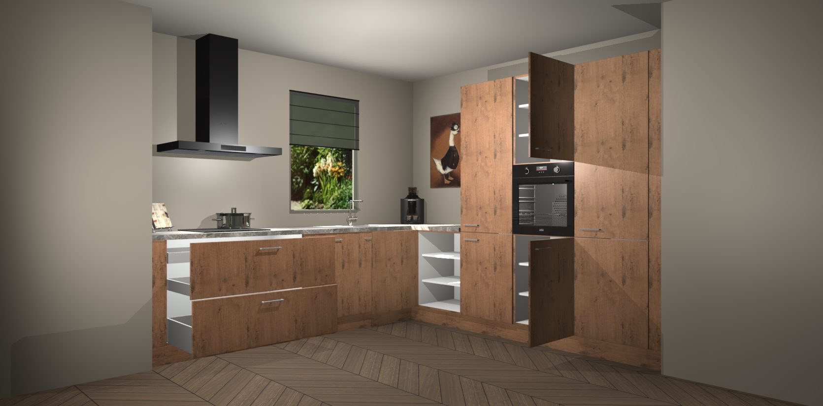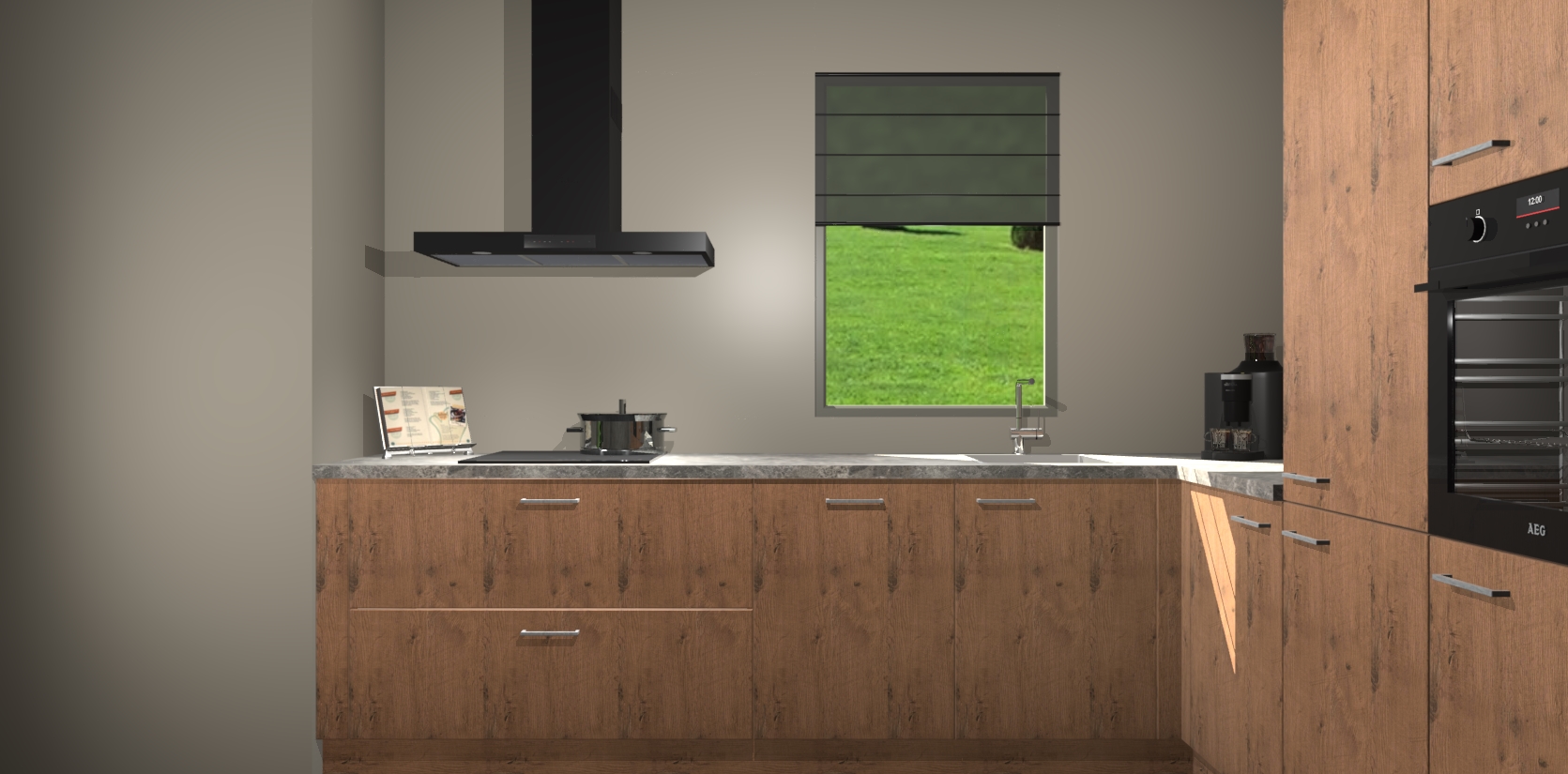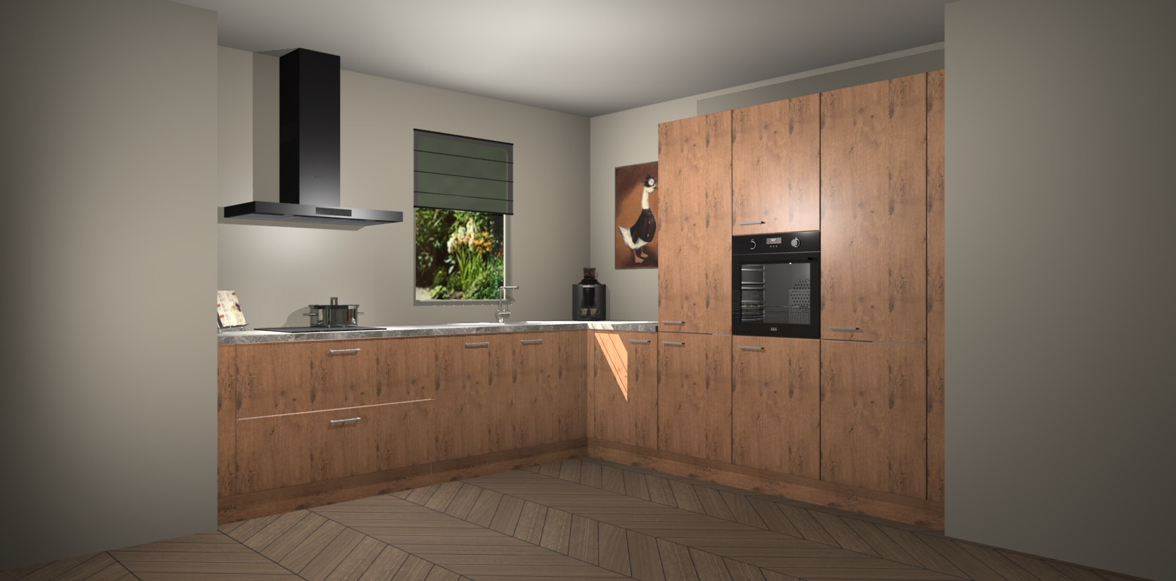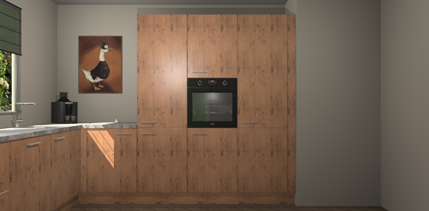 Welkom bij de Astoria Eiken keuken Laos. Deze prachtige keuken zal de komende jaren het middelpunt van de belangstelling in uw huis zijn. Uitgerust met vijf inbouwapparaten komt u nooit kookgereedschap tekort. Bovendien geeft de warme houtlook elke ruimte een uitnodigende en tijdloze uitstraling.