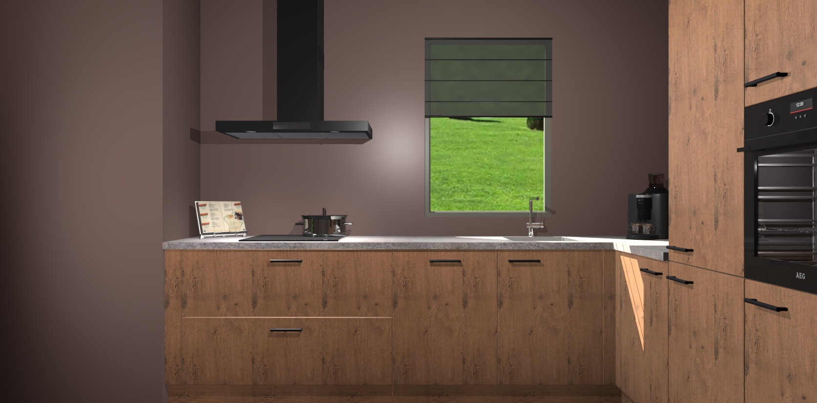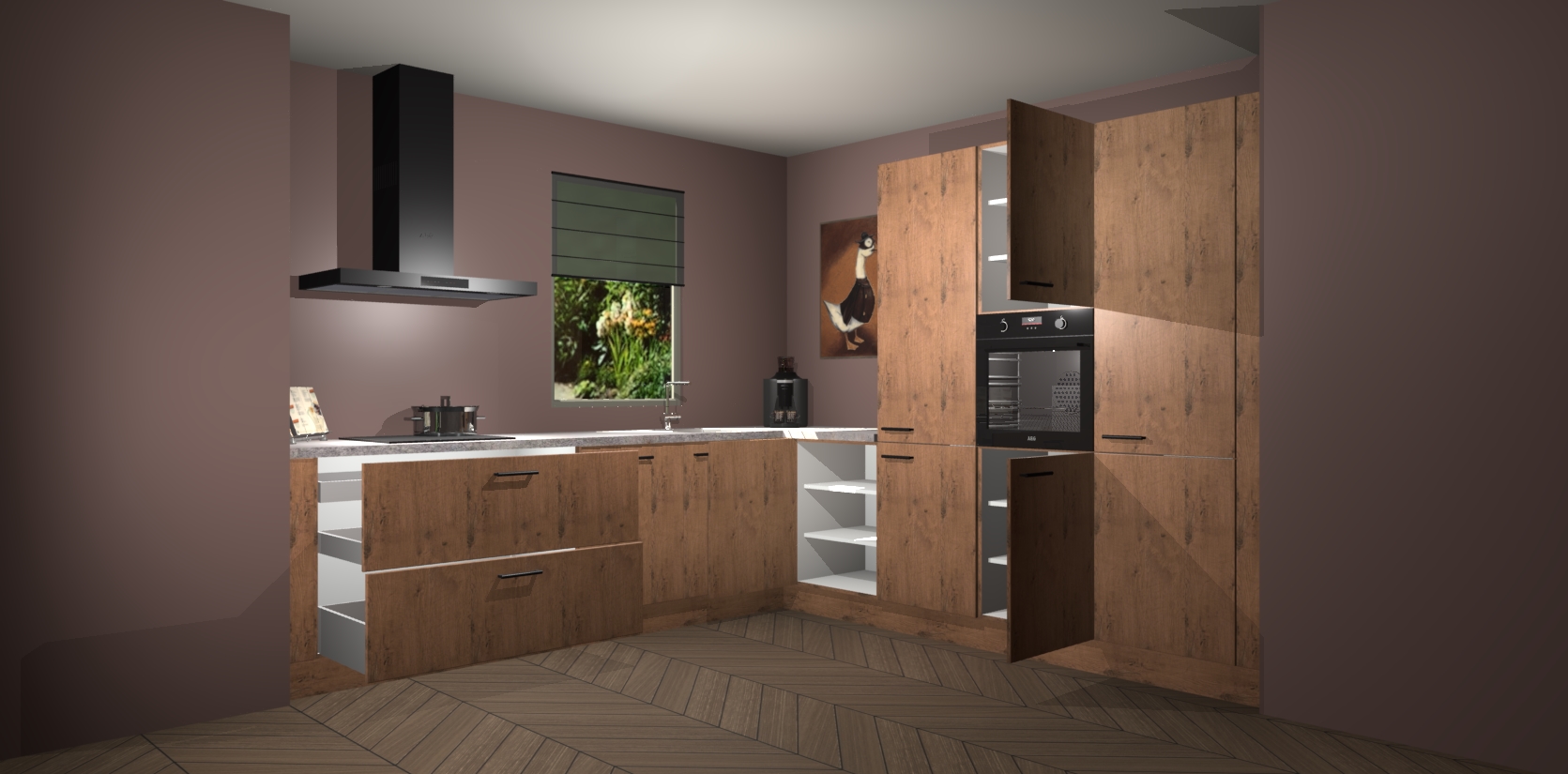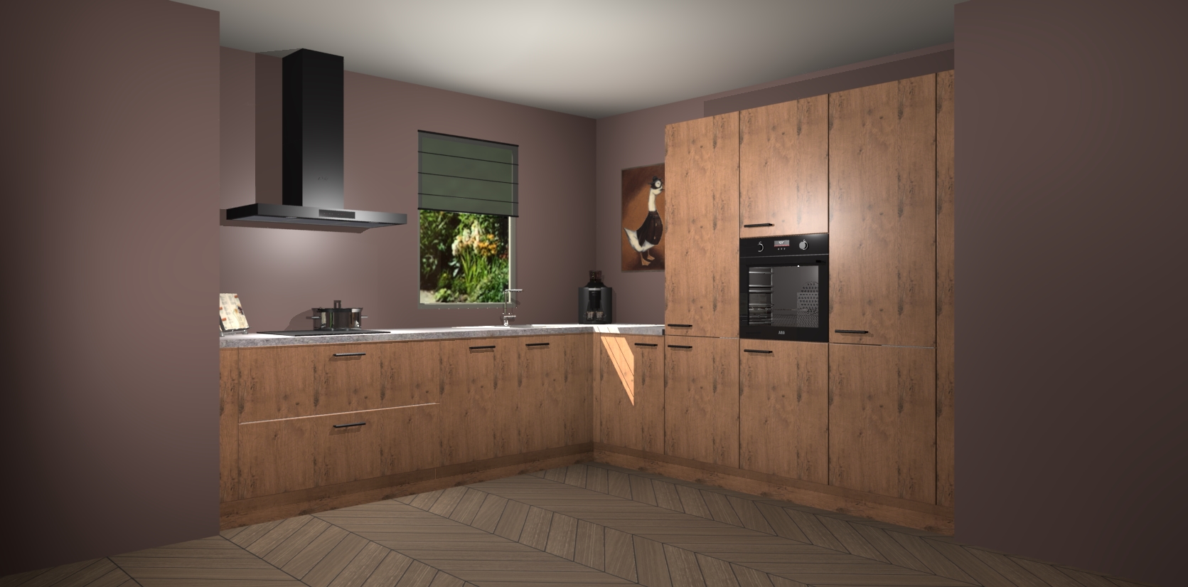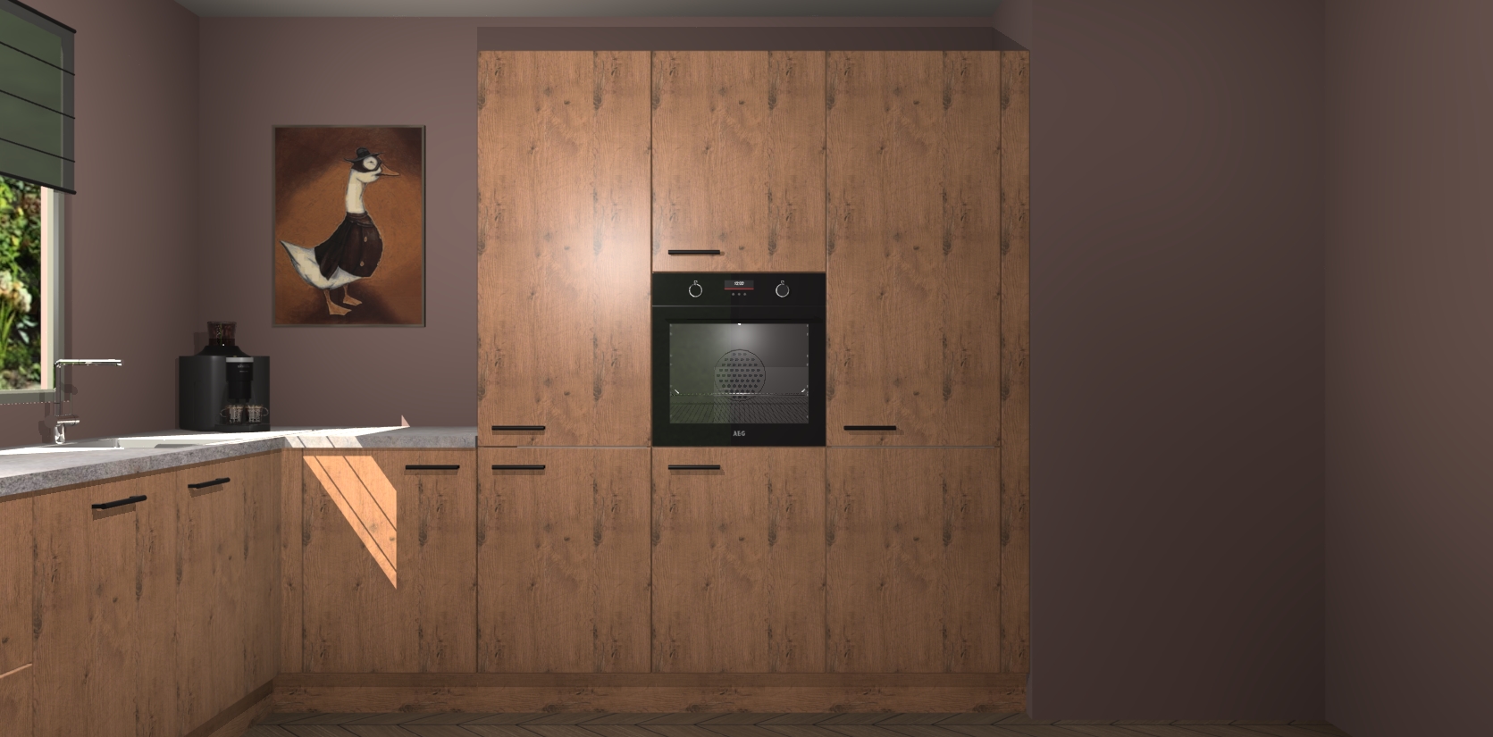 Welkom bij de Astoria Eiken keuken Laos. Deze prachtige keuken zal de komende jaren het middelpunt van de belangstelling in uw huis zijn. Uitgerust met vijf inbouwapparaten komt u nooit kookgereedschap tekort. Bovendien geeft de warme houtlook elke ruimte een uitnodigende en tijdloze uitstraling.