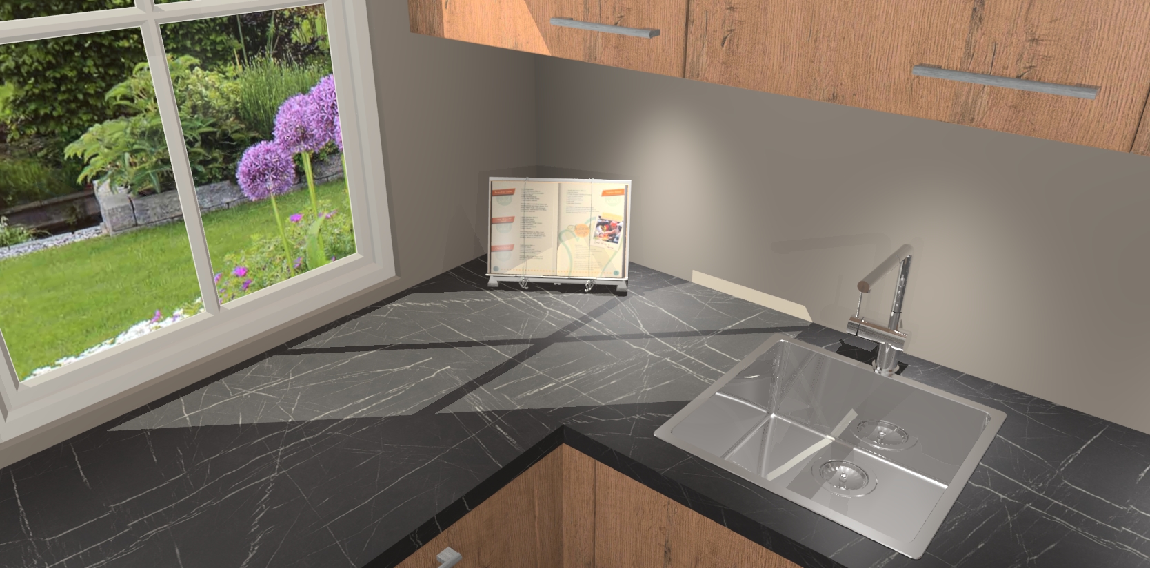 - Bij een hoekwerkblad zijn de hoeken in gevreesd en op maat gemaakt