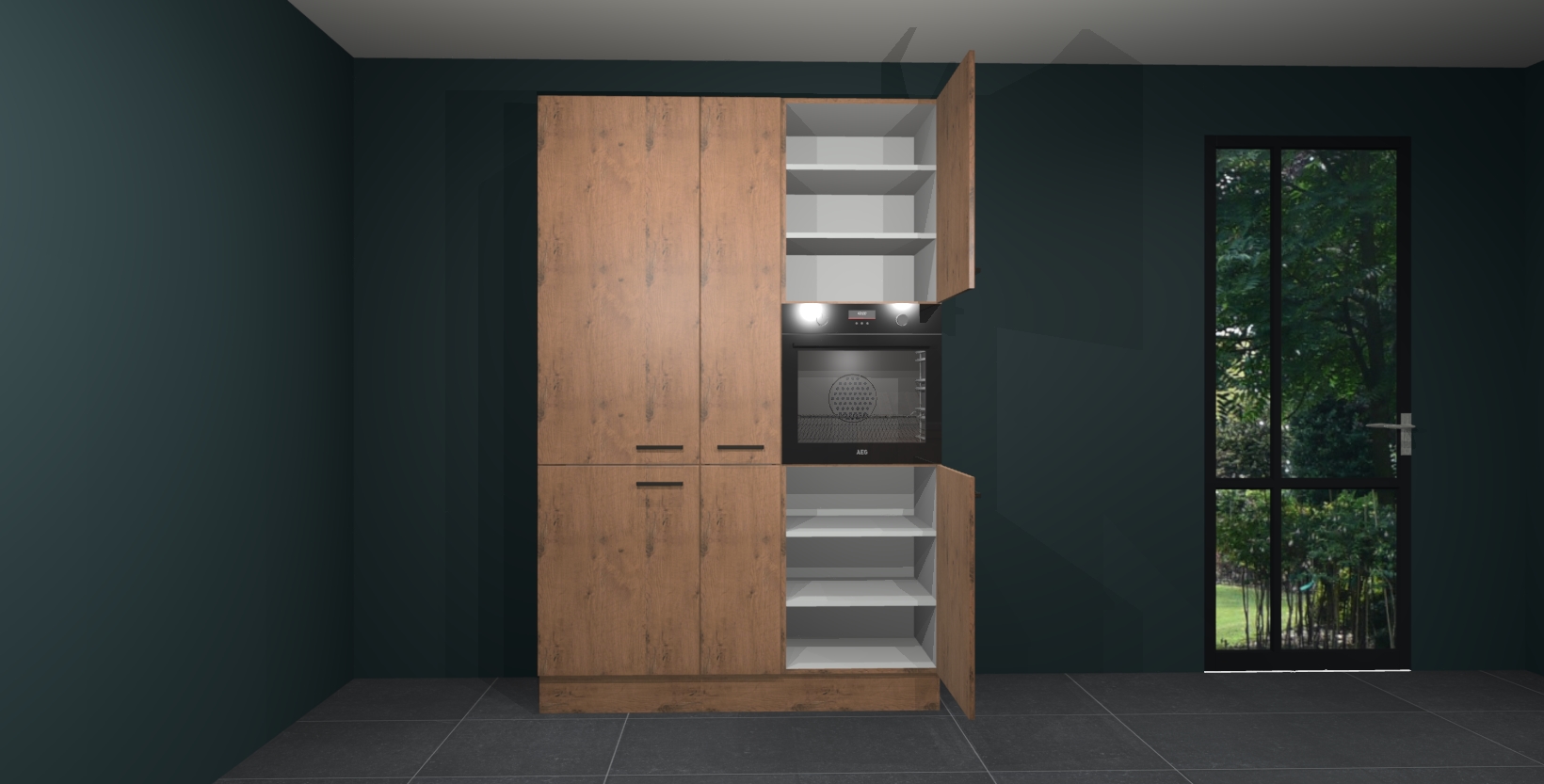 Met een modern, tijdloos design en ruime opslagruimte, zult u zich in no-time thuis voelen in uw nieuwe keuken. Uw leven wordt eenvoudiger met de soft-close deuren die voor het ultieme stille comfort zorgen - geen geluid dat u stoort terwijl u kookt. Ook is de keuken voorzien van 5 ingebouwde apparaten: een oven, inductie kookplaat, afzuigkap, vaatwasser en koelkast. Deze kunnen gemakkelijk na bestelling worden bijgewerkt naar AEG - waardoor uw luxe ervaring compleet is.