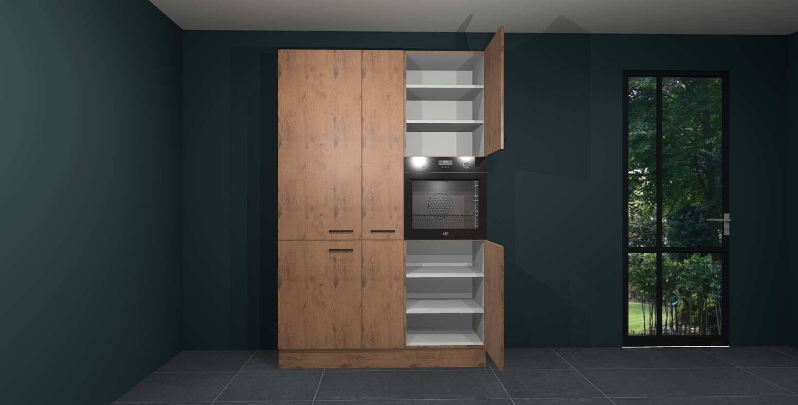 Met een modern, tijdloos design en ruime opslagruimte, zult u zich in no-time thuis voelen in uw nieuwe keuken. Uw leven wordt eenvoudiger met de soft-close deuren die voor het ultieme stille comfort zorgen - geen geluid dat u stoort terwijl u kookt. Ook is de keuken voorzien van 5 ingebouwde apparaten: een oven, inductie kookplaat, afzuigkap, vaatwasser en koelkast. Deze kunnen gemakkelijk na bestelling worden bijgewerkt naar AEG - waardoor uw luxe ervaring compleet is.