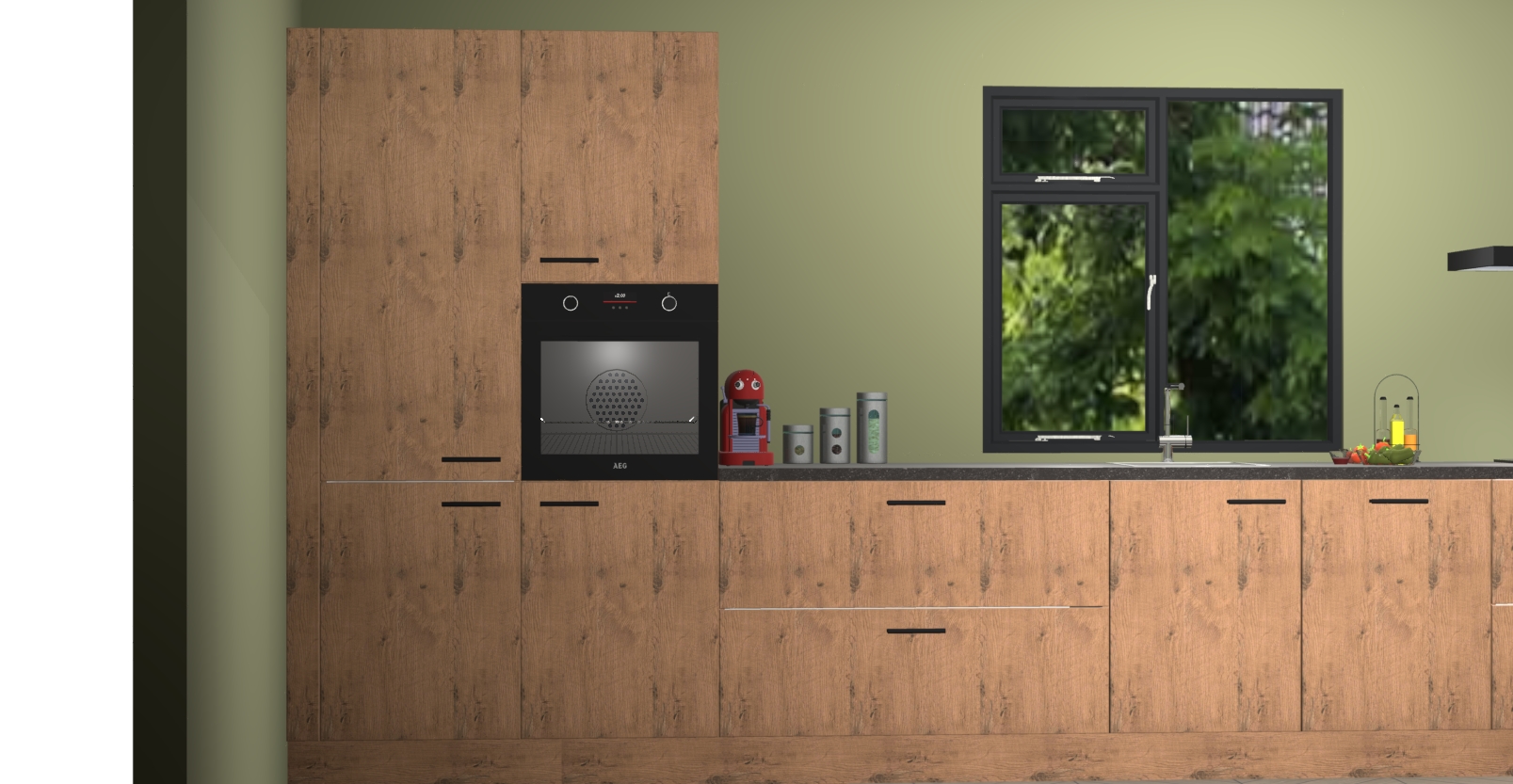 De Astoria eiken keuken Lille wordt geleverd met vijf inbouwapparaten - een oven, inductiekookplaat, afzuigkap, vaatwasser en koelkast. Maar dat is nog niet alles! Na bestelling kunnen deze apparaten eenvoudig worden geüpgraded naar premium AEG-apparatuur. Bovendien is er zelfs de optie om de oven te vervangen door een combimagnetron of uw inductiekookplaat te vervangen door een kookplaat met geïntegreerde afzuiging.
