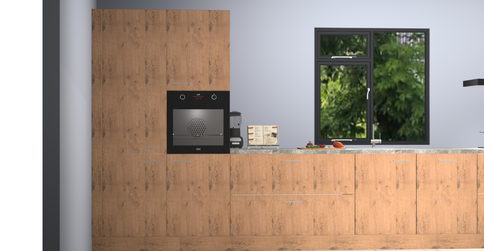 De Astoria eiken keuken Lille wordt geleverd met vijf inbouwapparaten - een oven, inductiekookplaat, afzuigkap, vaatwasser en koelkast. Maar dat is nog niet alles! Na bestelling kunnen deze apparaten eenvoudig worden geüpgraded naar premium AEG-apparatuur. Bovendien is er zelfs de optie om de oven te vervangen door een combimagnetron of uw inductiekookplaat te vervangen door een kookplaat met geïntegreerde afzuiging.