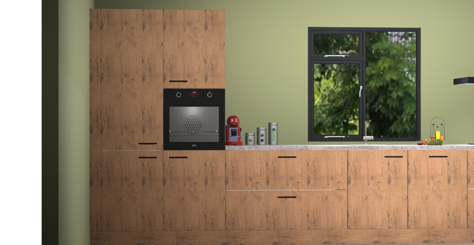 De Astoria eiken keuken Lille wordt geleverd met vijf inbouwapparaten - een oven, inductiekookplaat, afzuigkap, vaatwasser en koelkast. Maar dat is nog niet alles! Na bestelling kunnen deze apparaten eenvoudig worden geüpgraded naar premium AEG-apparatuur. Bovendien is er zelfs de optie om de oven te vervangen door een combimagnetron of uw inductiekookplaat te vervangen door een kookplaat met geïntegreerde afzuiging.