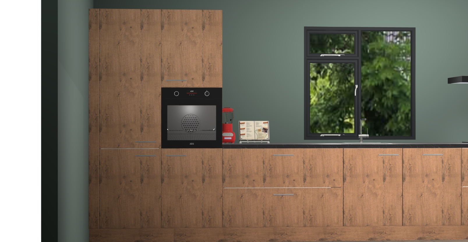 De Astoria eiken keuken Lille wordt geleverd met vijf inbouwapparaten - een oven, inductiekookplaat, afzuigkap, vaatwasser en koelkast. Maar dat is nog niet alles! Na bestelling kunnen deze apparaten eenvoudig worden geüpgraded naar premium AEG-apparatuur. Bovendien is er zelfs de optie om de oven te vervangen door een combimagnetron of uw inductiekookplaat te vervangen door een kookplaat met geïntegreerde afzuiging.