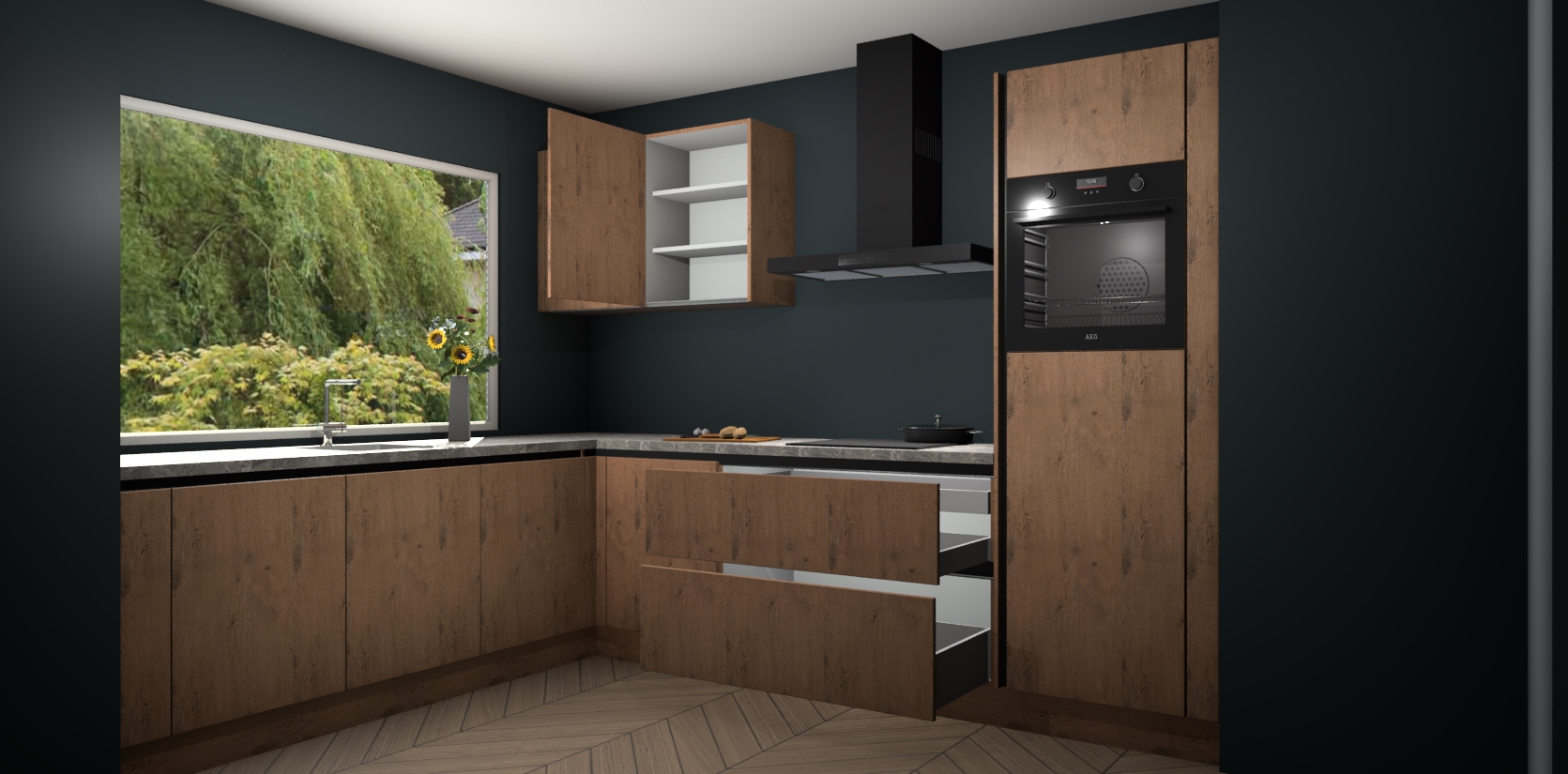 Bent u op zoek naar een onberispelijk keukenontwerp dat Duitse precisie en uitmuntende architectuur ademt? Zoek niet verder - de astoria eiken greeploze keuken Limonos biedt de perfecte moderne mix van stijl en functionaliteit.