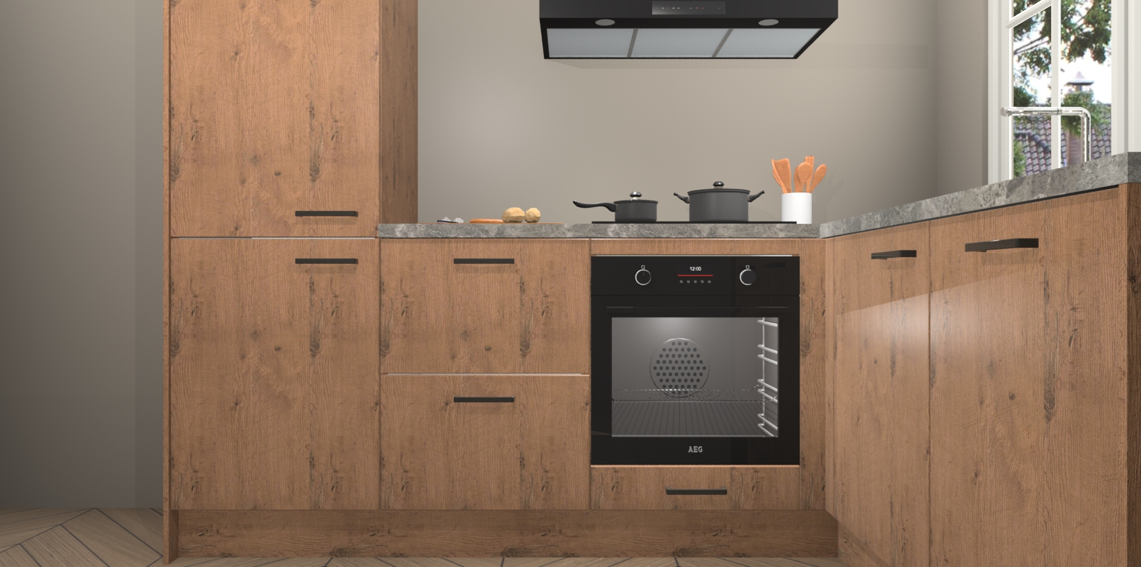 Met de Astoria Eiken keuken Linz krijgt u 5 op maat gemaakte apparaten: een oven, inductiekookplaat, afzuigkap, vaatwasser en koelkast die na bestelling makkelijk worden geüpgraded naar AEG-producten. Met de zacht sluitende deuren, bent u verzekerd van eenvoudige bediening in stilte. Het kastmeubilair wordt alvast pre-assemblage geleverd waardoor u sneller met het installeren begint. Ook zijn alle deuren voorzien van softclose zodat er geen sporen op de lade blijven als u ze dicht doet. Bovendien hoeft u bij ons geen twijfels of verassingen te hebben: we hebben een vaste lage prijs waardoor u weet wat u mag verwachten bij elke bestelling.
