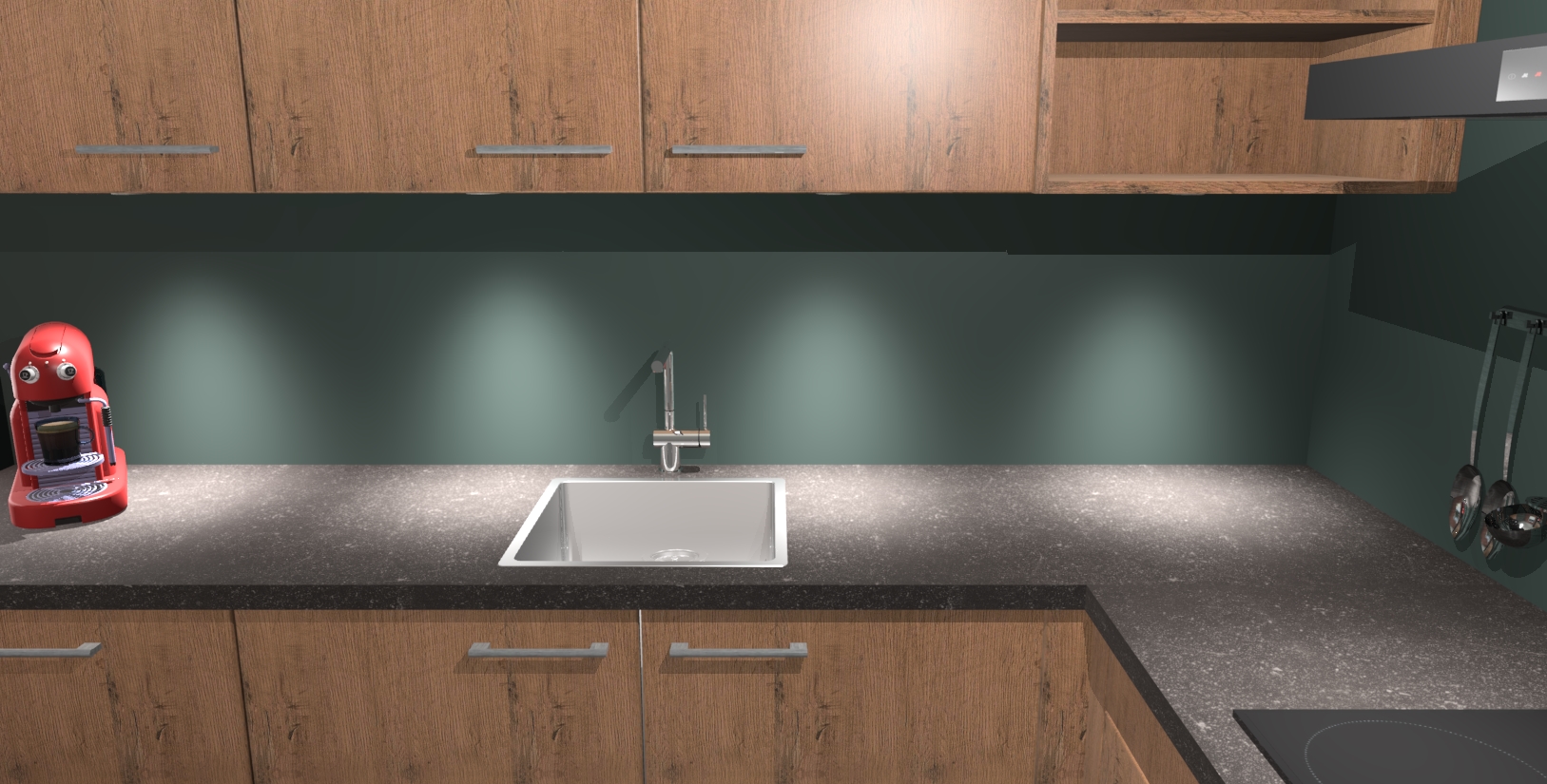 - De spoelbak is nog niet in gevreesd, dit dient tijdens het werk gedaan te worden