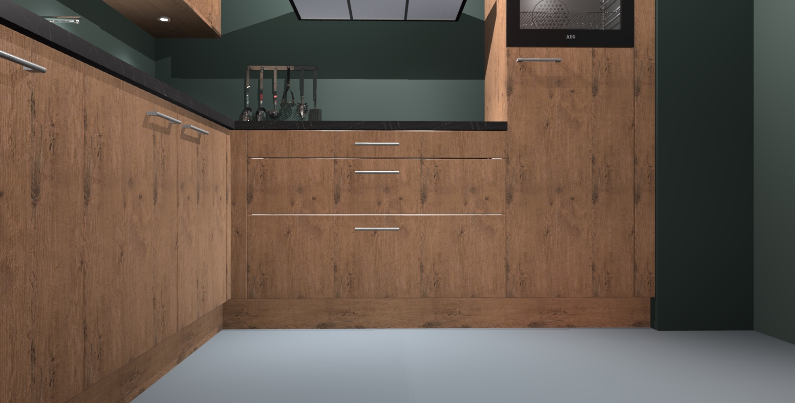 Met een modern, tijdloos design en ruime opslagruimte, zult u zich in no-time thuis voelen in uw nieuwe keuken. Uw leven wordt eenvoudiger met de soft-close deuren die voor het ultieme stille comfort zorgen - geen geluid dat u stoort terwijl u kookt. Ook is de keuken voorzien van 5 ingebouwde apparaten: een oven, inductie kookplaat, afzuigkap, vaatwasser en koelkast. Deze kunnen gemakkelijk na bestelling worden bijgewerkt naar AEG - waardoor uw luxe ervaring compleet is.