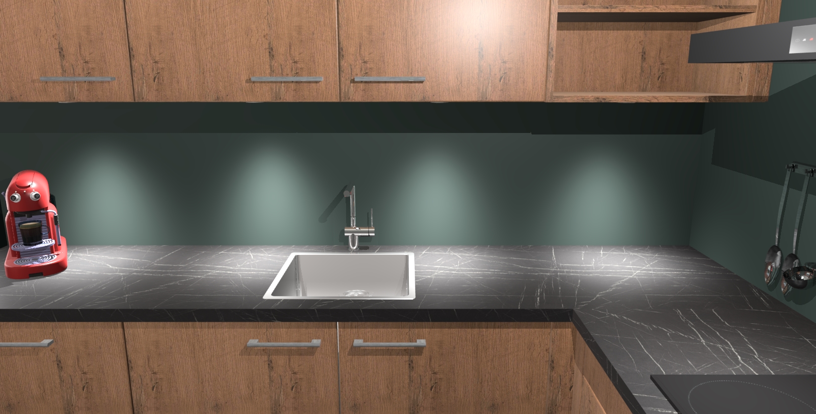 - De spoelbak is nog niet in gevreesd, dit dient tijdens het werk gedaan te worden