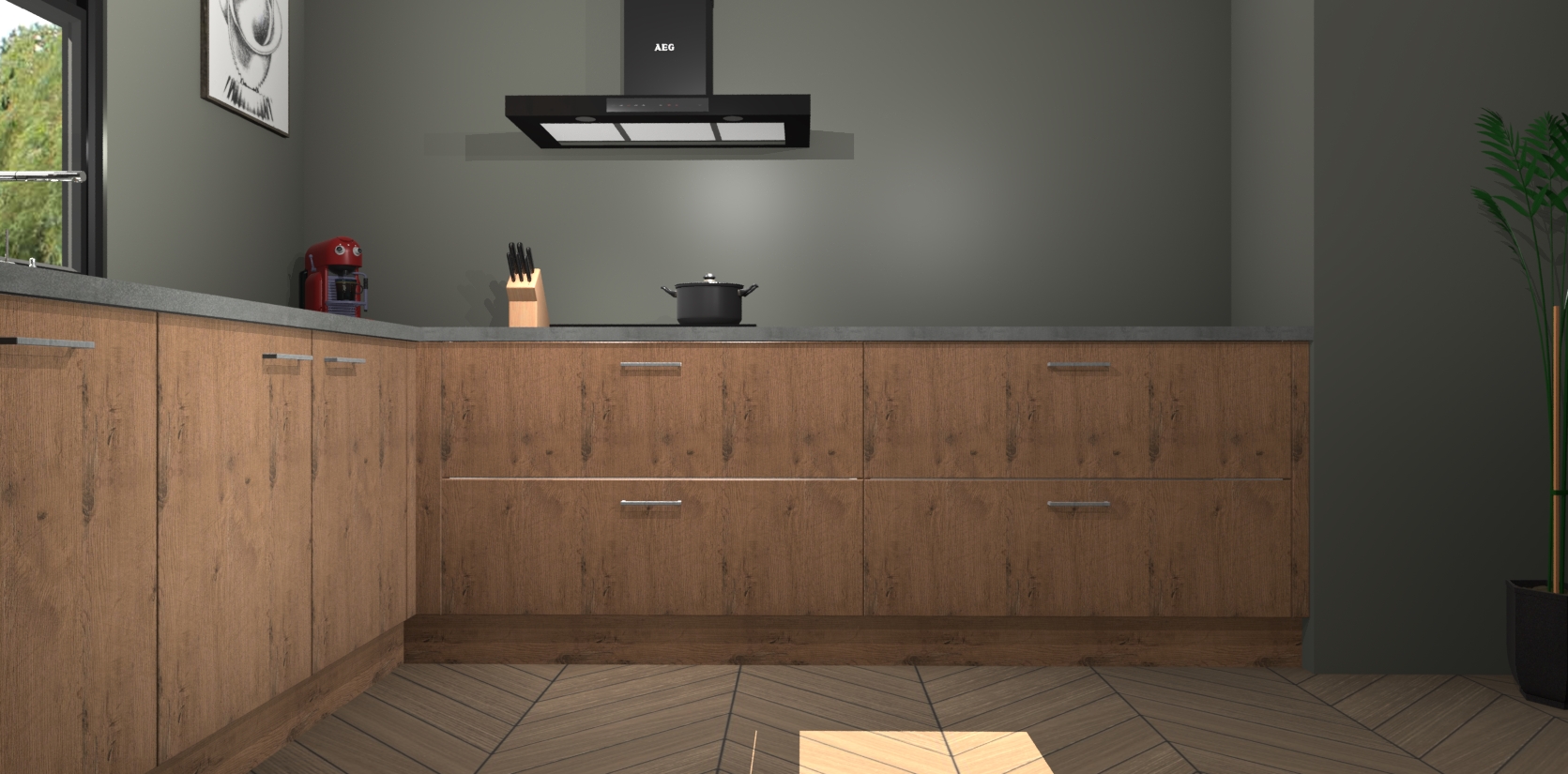 Inclusief plinten, stelpoten en werkblad