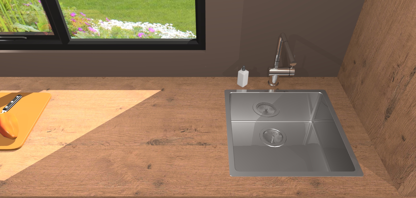 - De spoelbak is nog niet in gevreesd. Dit dient tijdens het werk gedaan te worden