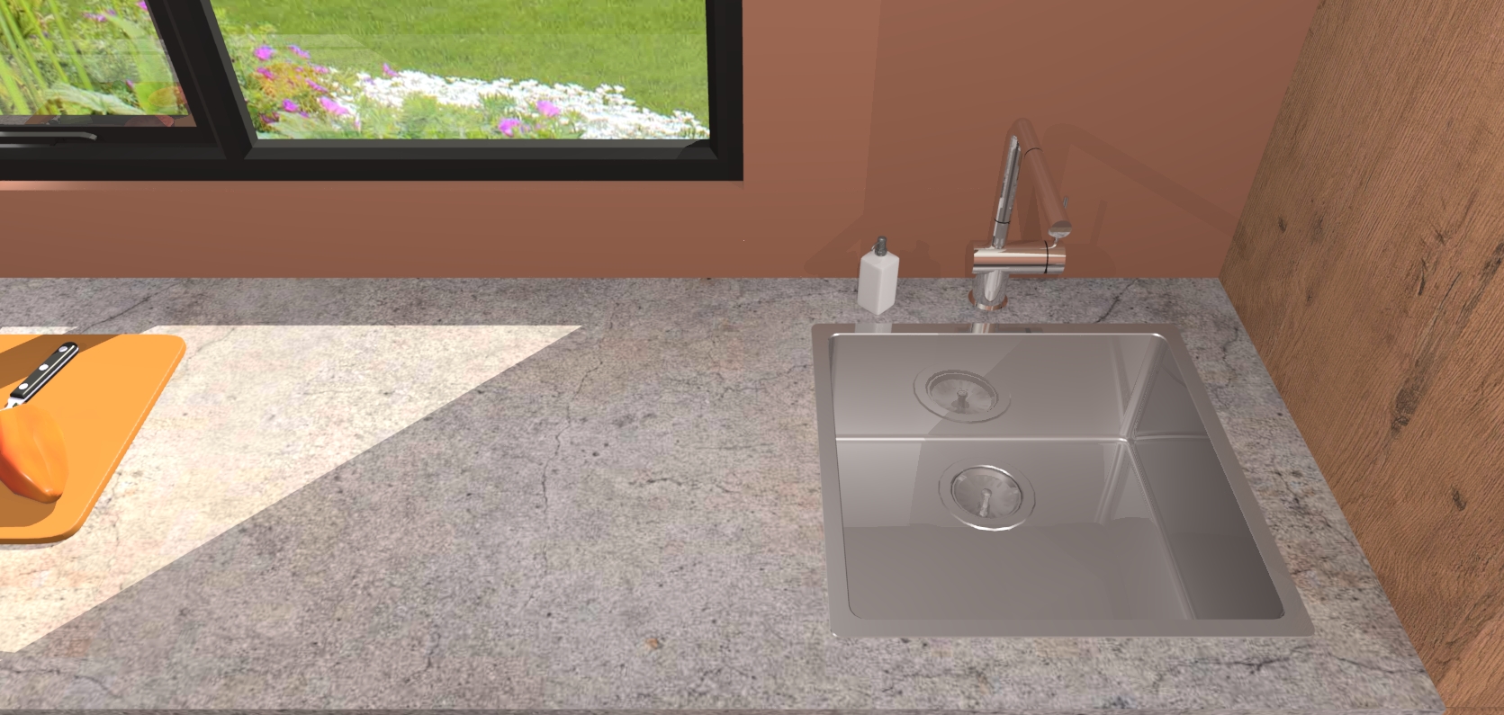 - De spoelbak is nog niet in gevreesd. Dit dient tijdens het werk gedaan te worden