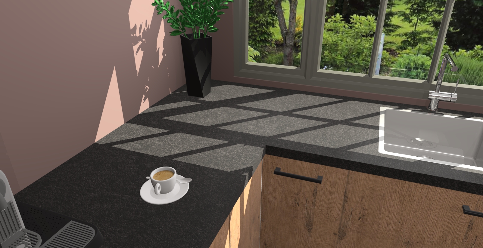 - Bij een hoekwerkblad zijn de hoeken in gevreesd en op maat gemaakt