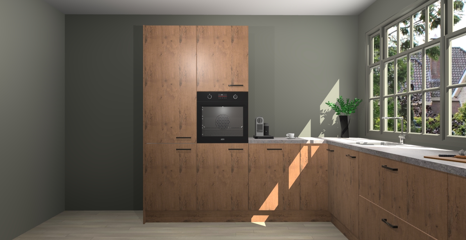Kom dichtbij de perfecte keuken van uw dromen met de Astoria Eiken keuken Malaga. Met een prachtige houtlook en eigentijds ontwerp, straalt deze keuken warmte en sfeer uit. Of u nu liefhebber bent van traditionele of moderne stijlen, er is genoeg ruimte om aan al uw behoeften te voldoen.