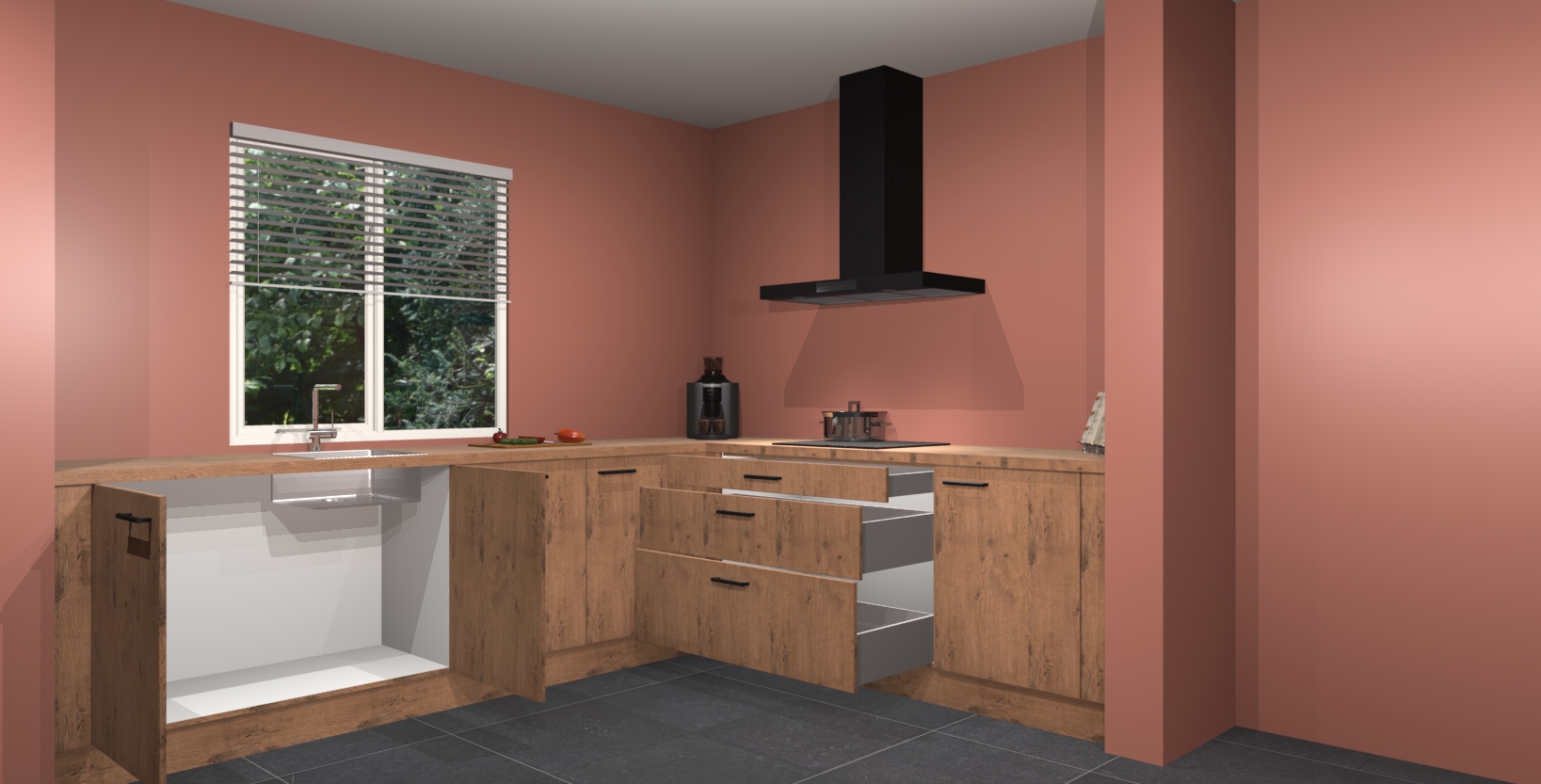 - Bij een hoekwerkblad zijn de hoeken in gevreesd en op maat gemaakt