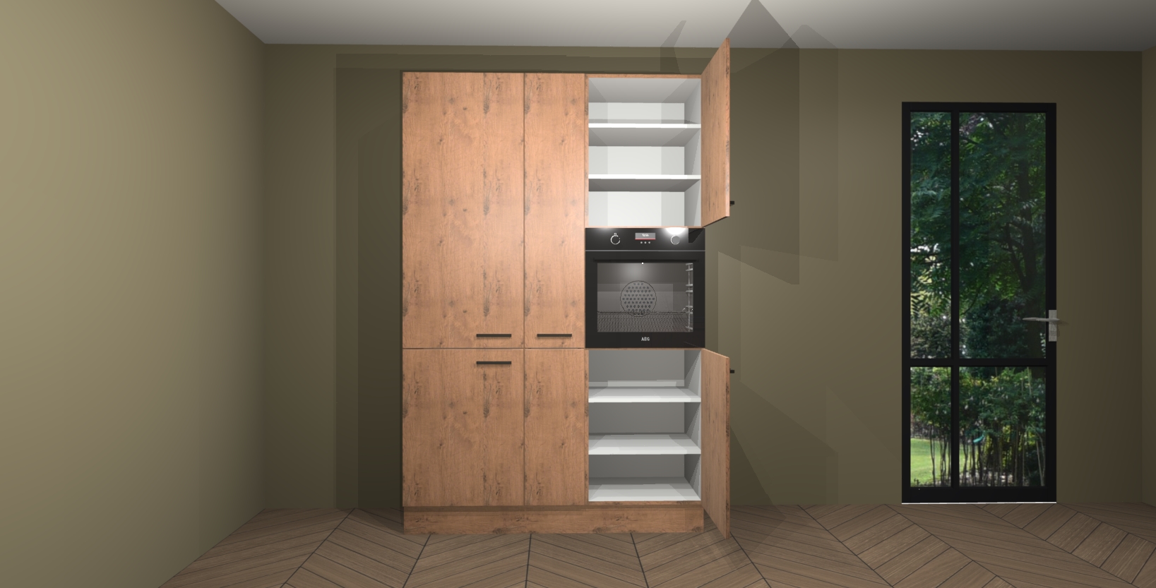 Met een modern, tijdloos design en ruime opslagruimte, zult u zich in no-time thuis voelen in uw nieuwe keuken. Uw leven wordt eenvoudiger met de soft-close deuren die voor het ultieme stille comfort zorgen - geen geluid dat u stoort terwijl u kookt. Ook is de keuken voorzien van 5 ingebouwde apparaten: een oven, inductie kookplaat, afzuigkap, vaatwasser en koelkast. Deze kunnen gemakkelijk na bestelling worden bijgewerkt naar AEG - waardoor uw luxe ervaring compleet is.