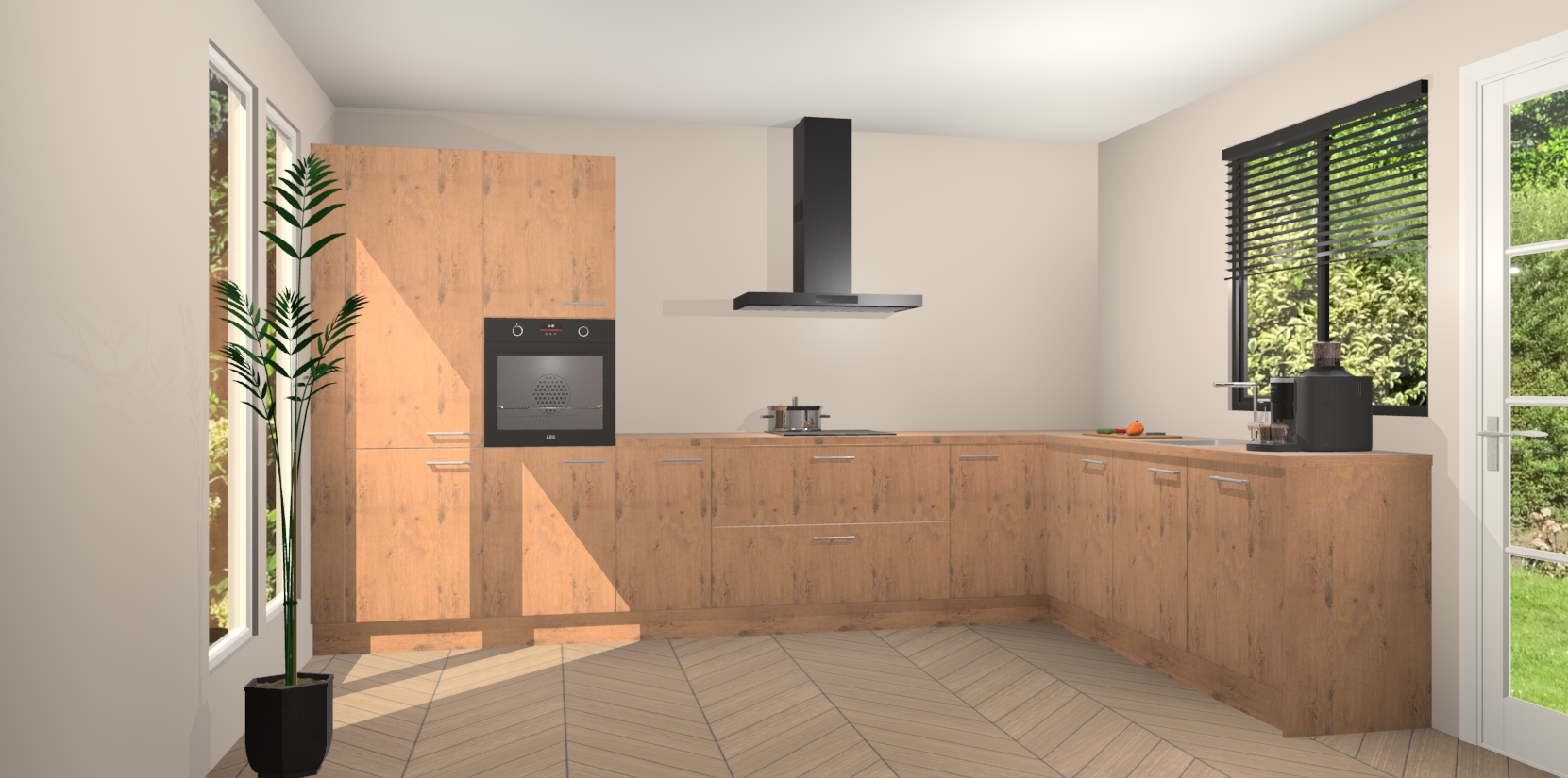 Met een modern, tijdloos design en ruime opslagruimte, zult u zich in no-time thuis voelen in uw nieuwe keuken. Uw leven wordt eenvoudiger met de soft-close deuren die voor het ultieme stille comfort zorgen - geen geluid dat u stoort terwijl u kookt. Ook is de keuken voorzien van 5 ingebouwde apparaten: een oven, inductie kookplaat, afzuigkap, vaatwasser en koelkast. Deze kunnen gemakkelijk na bestelling worden bijgewerkt naar AEG - waardoor uw luxe ervaring compleet is.