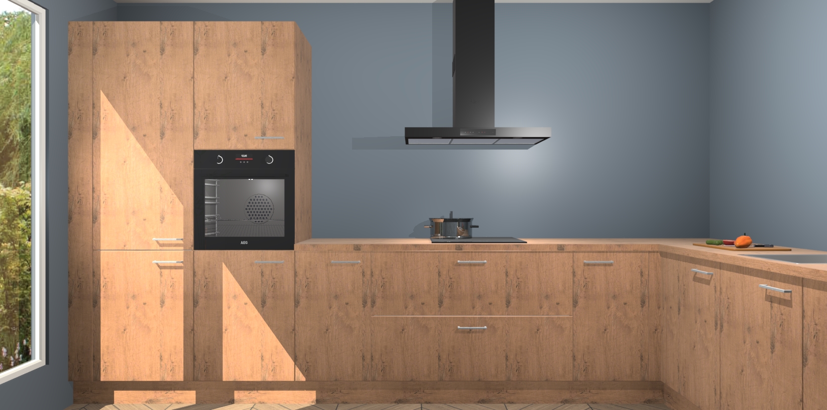 Met een modern, tijdloos design en ruime opslagruimte, zult u zich in no-time thuis voelen in uw nieuwe keuken. Uw leven wordt eenvoudiger met de soft-close deuren die voor het ultieme stille comfort zorgen - geen geluid dat u stoort terwijl u kookt. Ook is de keuken voorzien van 5 ingebouwde apparaten: een oven, inductie kookplaat, afzuigkap, vaatwasser en koelkast. Deze kunnen gemakkelijk na bestelling worden bijgewerkt naar AEG - waardoor uw luxe ervaring compleet is.