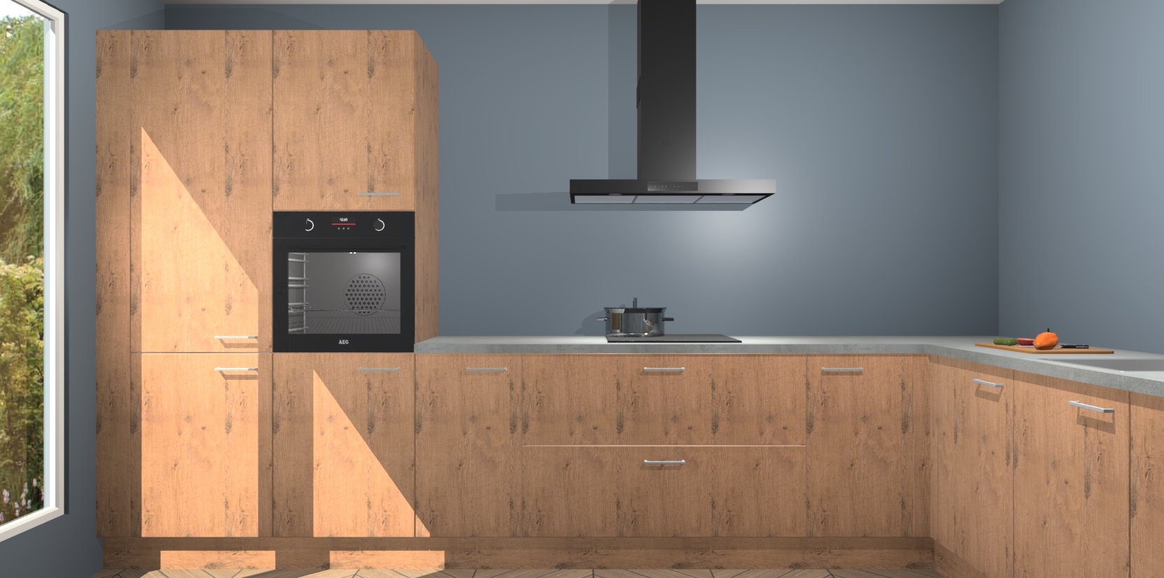 Met een modern, tijdloos design en ruime opslagruimte, zult u zich in no-time thuis voelen in uw nieuwe keuken. Uw leven wordt eenvoudiger met de soft-close deuren die voor het ultieme stille comfort zorgen - geen geluid dat u stoort terwijl u kookt. Ook is de keuken voorzien van 5 ingebouwde apparaten: een oven, inductie kookplaat, afzuigkap, vaatwasser en koelkast. Deze kunnen gemakkelijk na bestelling worden bijgewerkt naar AEG - waardoor uw luxe ervaring compleet is.