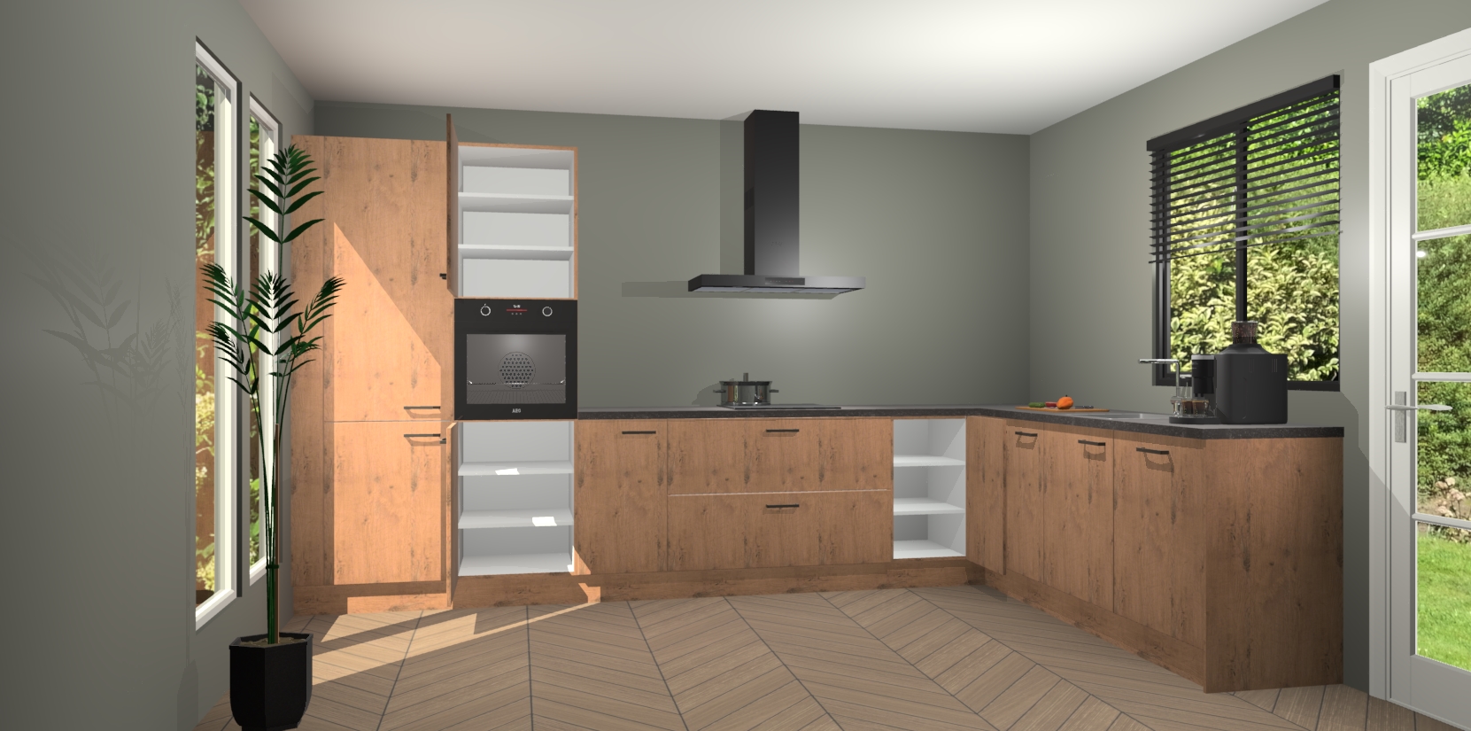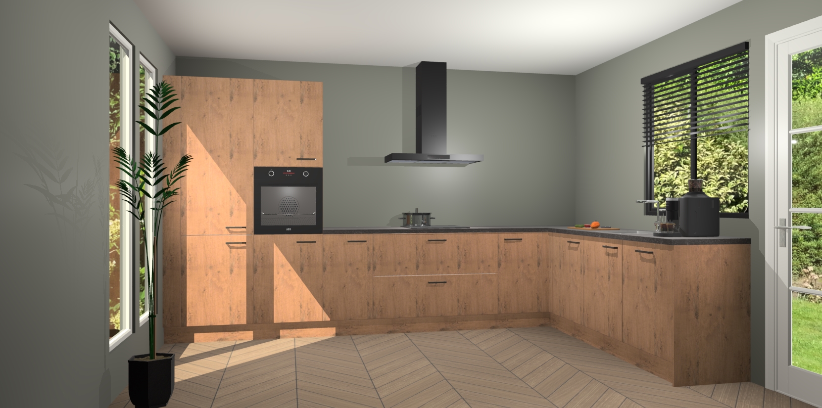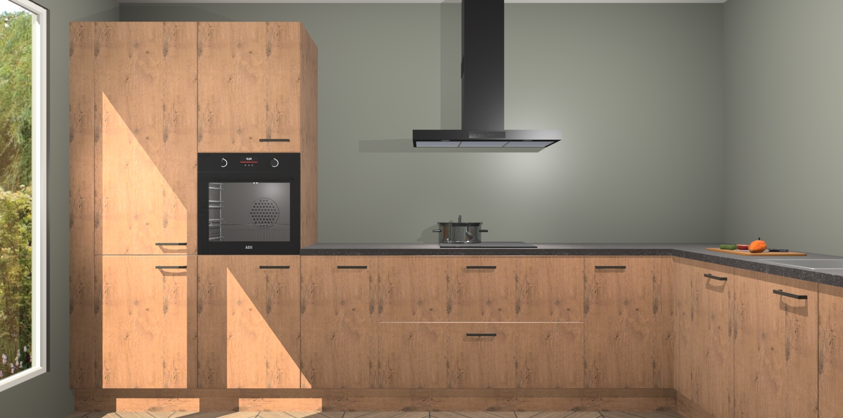 Met een modern, tijdloos design en ruime opslagruimte, zult u zich in no-time thuis voelen in uw nieuwe keuken. Uw leven wordt eenvoudiger met de soft-close deuren die voor het ultieme stille comfort zorgen - geen geluid dat u stoort terwijl u kookt. Ook is de keuken voorzien van 5 ingebouwde apparaten: een oven, inductie kookplaat, afzuigkap, vaatwasser en koelkast. Deze kunnen gemakkelijk na bestelling worden bijgewerkt naar AEG - waardoor uw luxe ervaring compleet is.