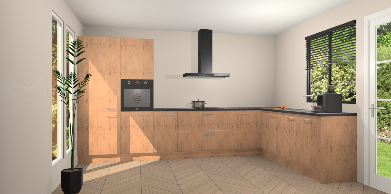 Met een modern, tijdloos design en ruime opslagruimte, zult u zich in no-time thuis voelen in uw nieuwe keuken. Uw leven wordt eenvoudiger met de soft-close deuren die voor het ultieme stille comfort zorgen - geen geluid dat u stoort terwijl u kookt. Ook is de keuken voorzien van 5 ingebouwde apparaten: een oven, inductie kookplaat, afzuigkap, vaatwasser en koelkast. Deze kunnen gemakkelijk na bestelling worden bijgewerkt naar AEG - waardoor uw luxe ervaring compleet is.