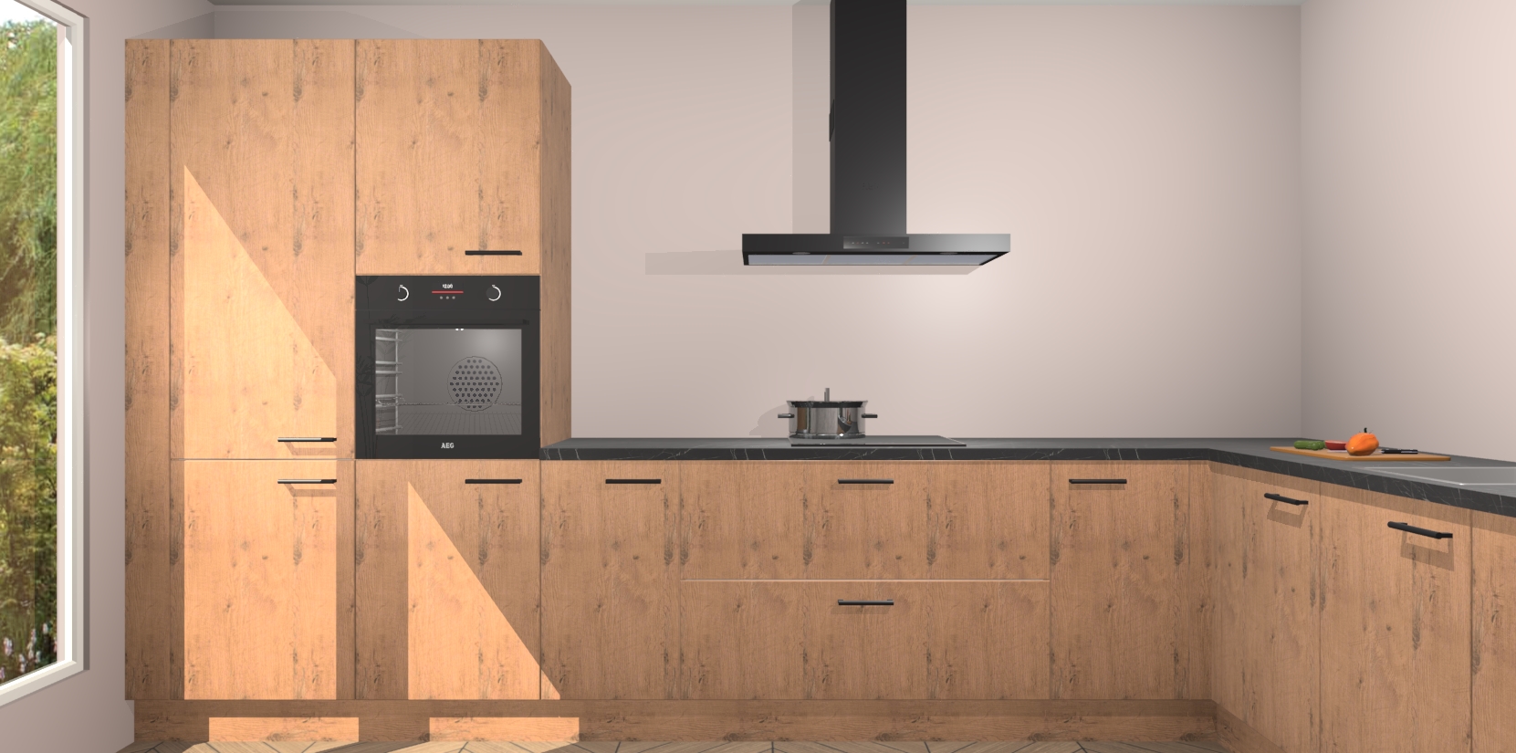 Met een modern, tijdloos design en ruime opslagruimte, zult u zich in no-time thuis voelen in uw nieuwe keuken. Uw leven wordt eenvoudiger met de soft-close deuren die voor het ultieme stille comfort zorgen - geen geluid dat u stoort terwijl u kookt. Ook is de keuken voorzien van 5 ingebouwde apparaten: een oven, inductie kookplaat, afzuigkap, vaatwasser en koelkast. Deze kunnen gemakkelijk na bestelling worden bijgewerkt naar AEG - waardoor uw luxe ervaring compleet is.