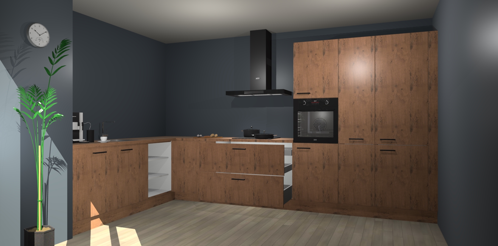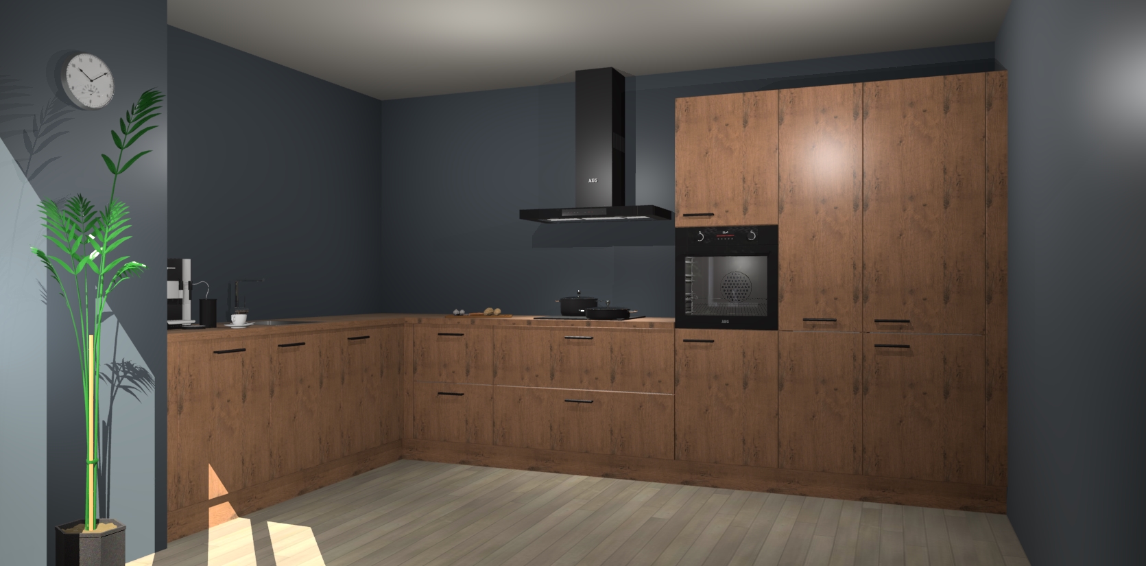 Welkom bij de astoria eiken keuken Nuuk. Deze prachtige keuken zal de komende jaren het middelpunt van de belangstelling in uw huis zijn. Uitgerust met vijf inbouwapparaten komt u nooit kookgereedschap tekort.