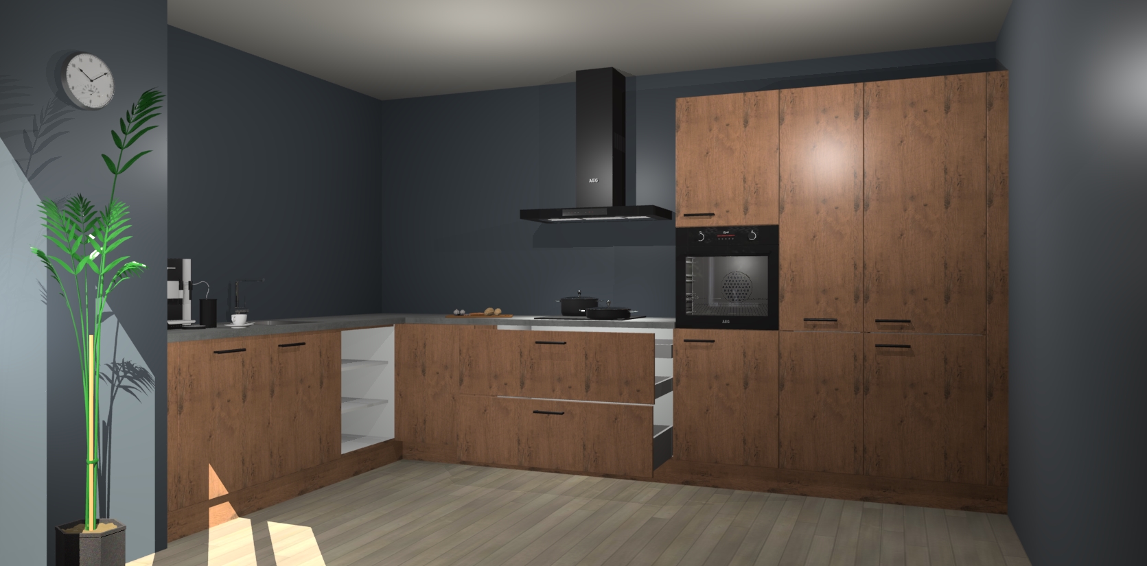 Welkom bij de astoria eiken keuken Nuuk. Deze prachtige keuken zal de komende jaren het middelpunt van de belangstelling in uw huis zijn. Uitgerust met vijf inbouwapparaten komt u nooit kookgereedschap tekort.