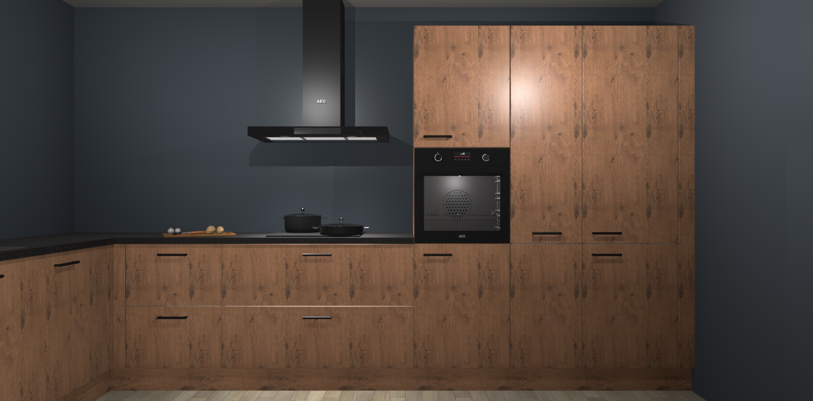 Welkom bij de astoria eiken keuken Nuuk. Deze prachtige keuken zal de komende jaren het middelpunt van de belangstelling in uw huis zijn. Uitgerust met vijf inbouwapparaten komt u nooit kookgereedschap tekort.