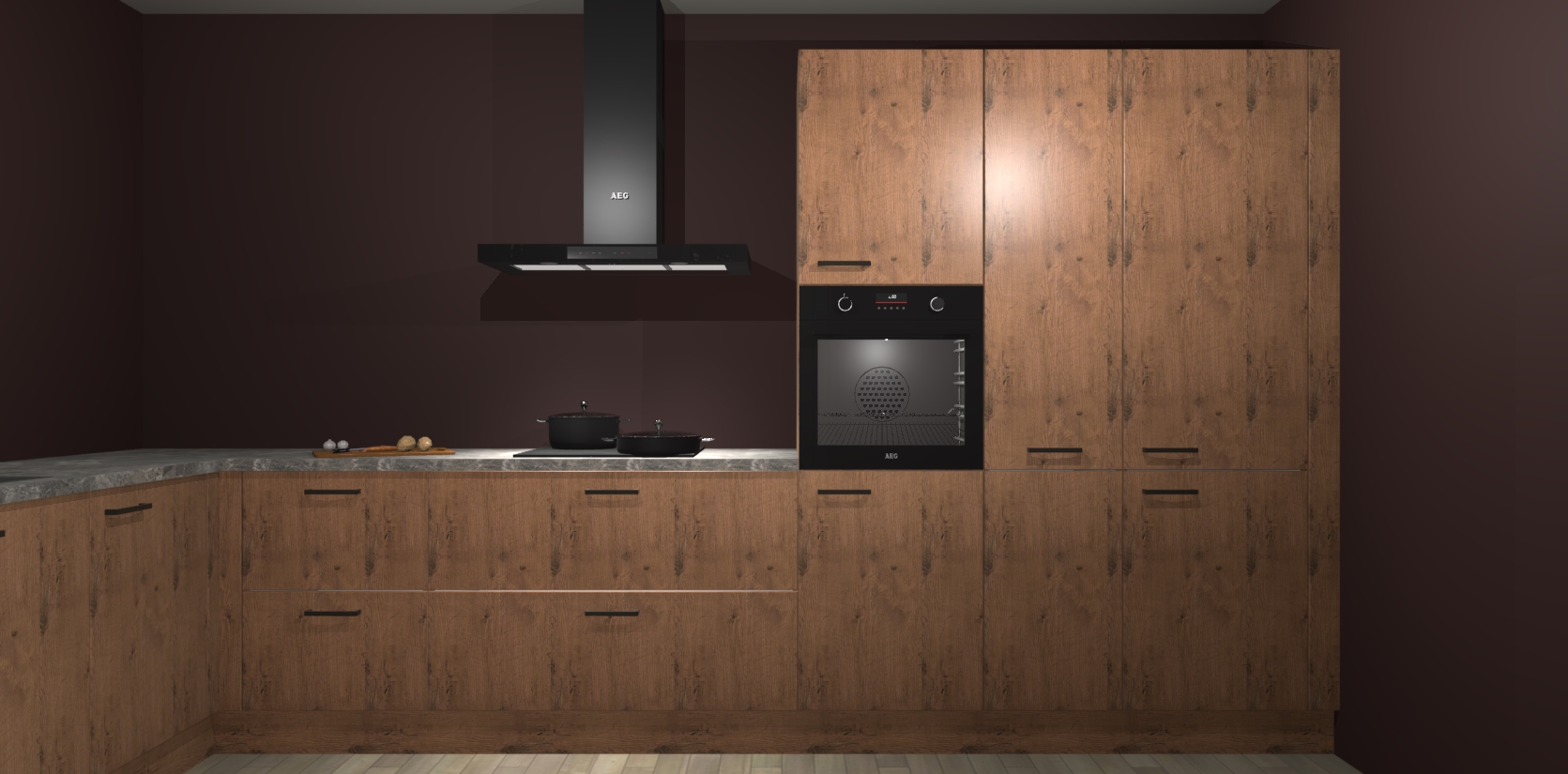 Welkom bij de astoria eiken keuken Nuuk. Deze prachtige keuken zal de komende jaren het middelpunt van de belangstelling in uw huis zijn. Uitgerust met vijf inbouwapparaten komt u nooit kookgereedschap tekort.