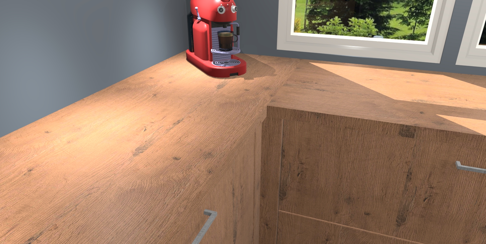 - Bij een hoekwerkblad zijn de hoeken in gevreesd en op maat gemaakt