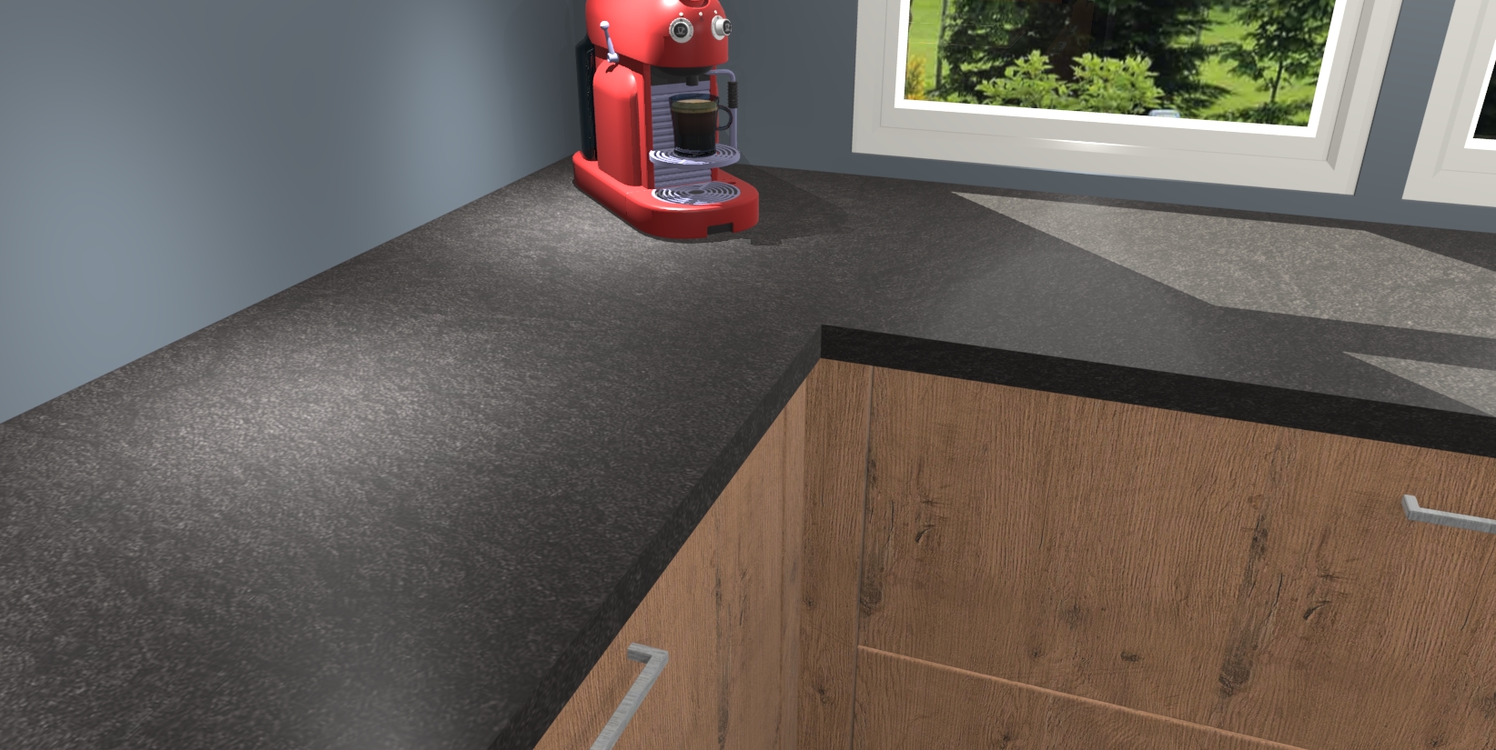 - Bij een hoekwerkblad zijn de hoeken in gevreesd en op maat gemaakt