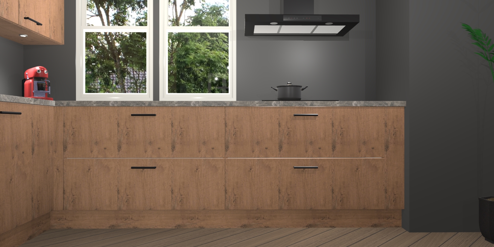 Inclusief plinten, stelpoten en werkblad