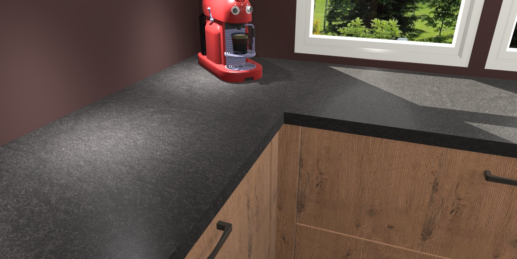 - Bij een hoekwerkblad zijn de hoeken in gevreesd en op maat gemaakt