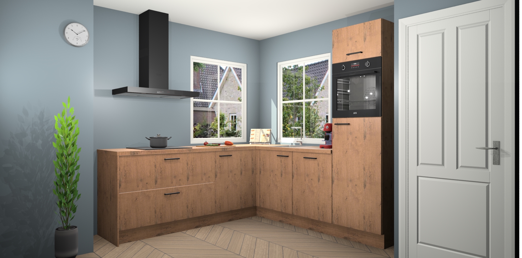 De Astoria Eiken keuken Pai bevat vijf essentiële inbouwapparaten - een oven, inductiekookplaat, afzuigkap, vaatwasser en koelkast - zodat u er na levering meteen in kunt. Voor de slimme kopers die weten dat apparaten vaak het verschil kunnen maken tussen functioneel en luxueus, bieden we eenvoudige upgradeopties naar AEG, van oven naar combimagnetron na bestelling of naar een kookplaat met geïntrigeerde afzuiging. En met onze vaste lage prijs en snelle levering binnen zeven weken vanaf de orderbevestiging hoeft u zich geen zorgen te maken over verborgen kosten of lange levertijden die uw droomkeuken kunnen vertragen.