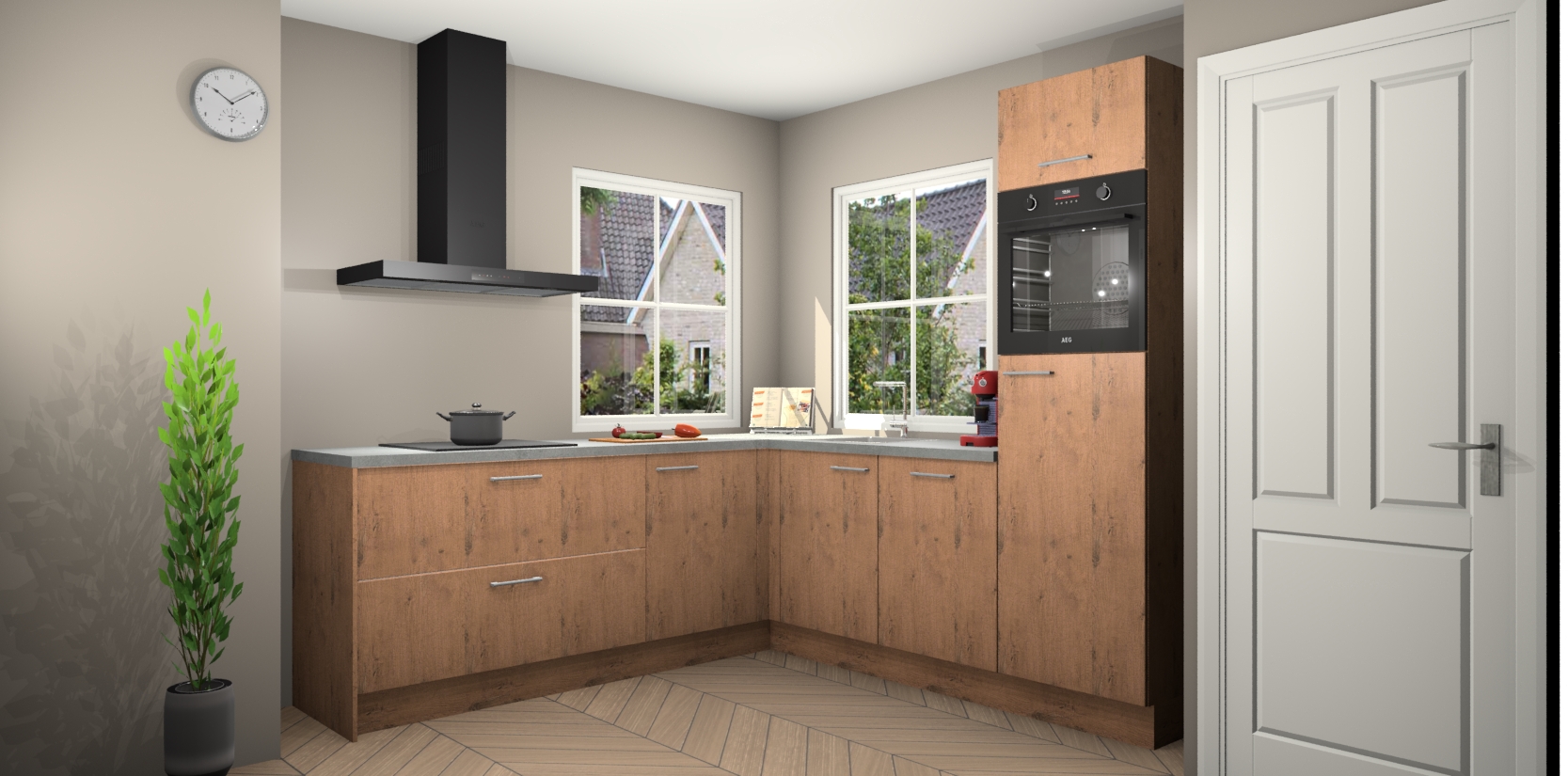 De Astoria Eiken keuken Pai bevat vijf essentiële inbouwapparaten - een oven, inductiekookplaat, afzuigkap, vaatwasser en koelkast - zodat u er na levering meteen in kunt. Voor de slimme kopers die weten dat apparaten vaak het verschil kunnen maken tussen functioneel en luxueus, bieden we eenvoudige upgradeopties naar AEG, van oven naar combimagnetron na bestelling of naar een kookplaat met geïntrigeerde afzuiging. En met onze vaste lage prijs en snelle levering binnen zeven weken vanaf de orderbevestiging hoeft u zich geen zorgen te maken over verborgen kosten of lange levertijden die uw droomkeuken kunnen vertragen.