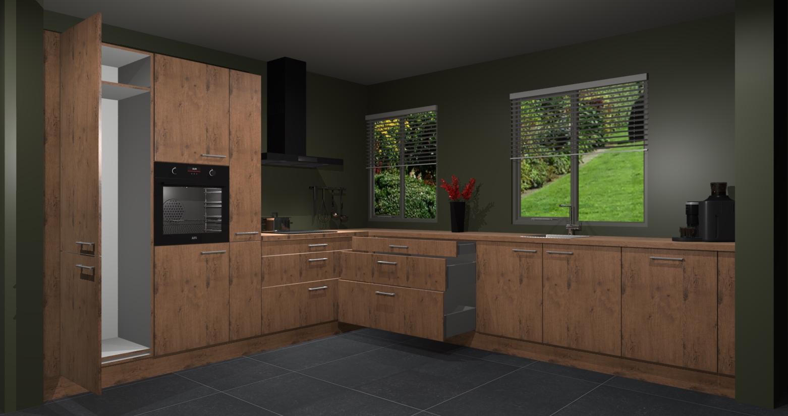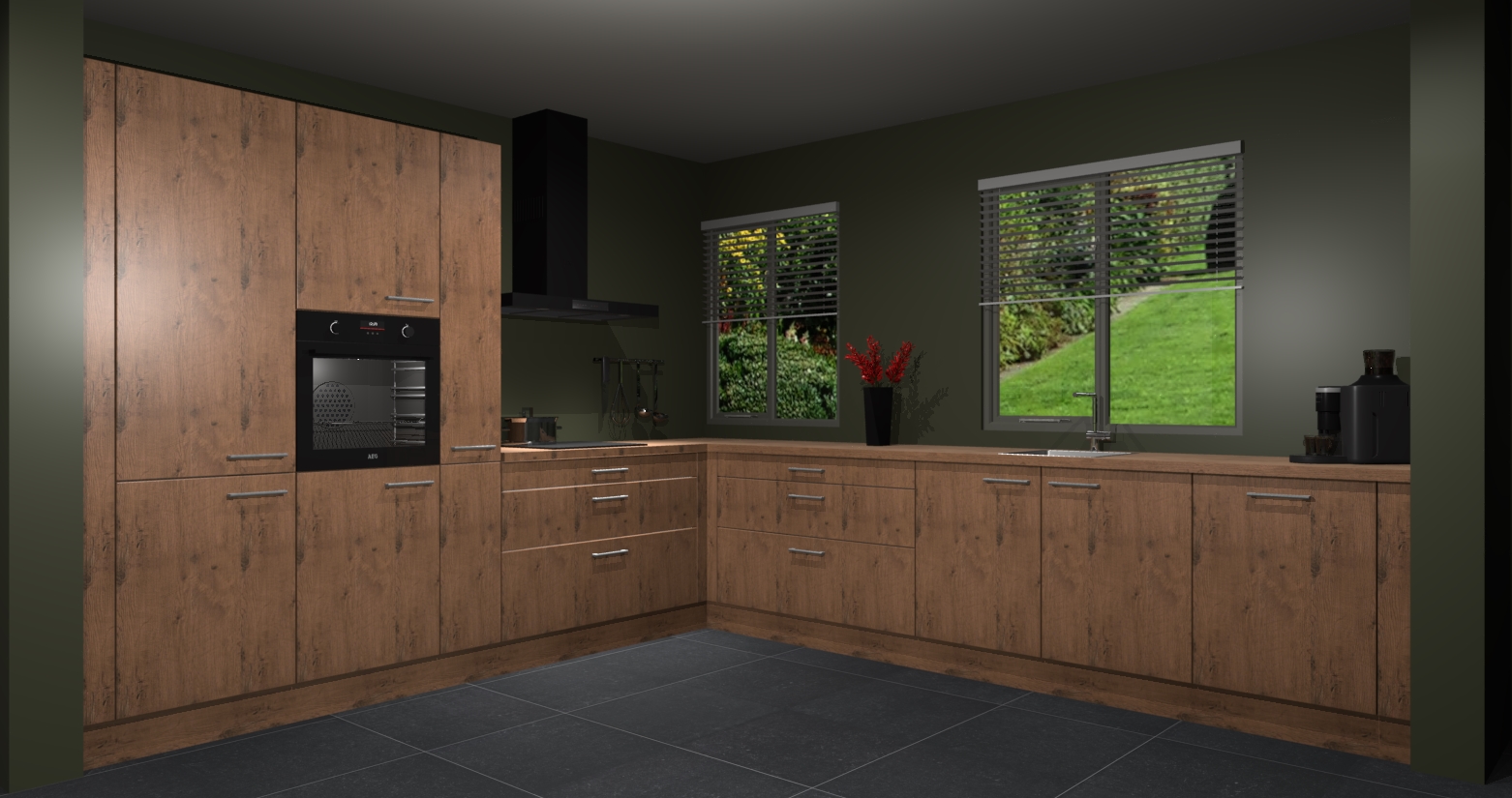 Welkom bij de Astoria Eiken keuken Palermo. Deze prachtige keuken zal de komende jaren het middelpunt van de belangstelling in uw huis zijn. Uitgerust met vijf inbouwapparaten komt u nooit kookgereedschap tekort. Bovendien geeft de warme houtlook elke ruimte een uitnodigende en tijdloze uitstraling.