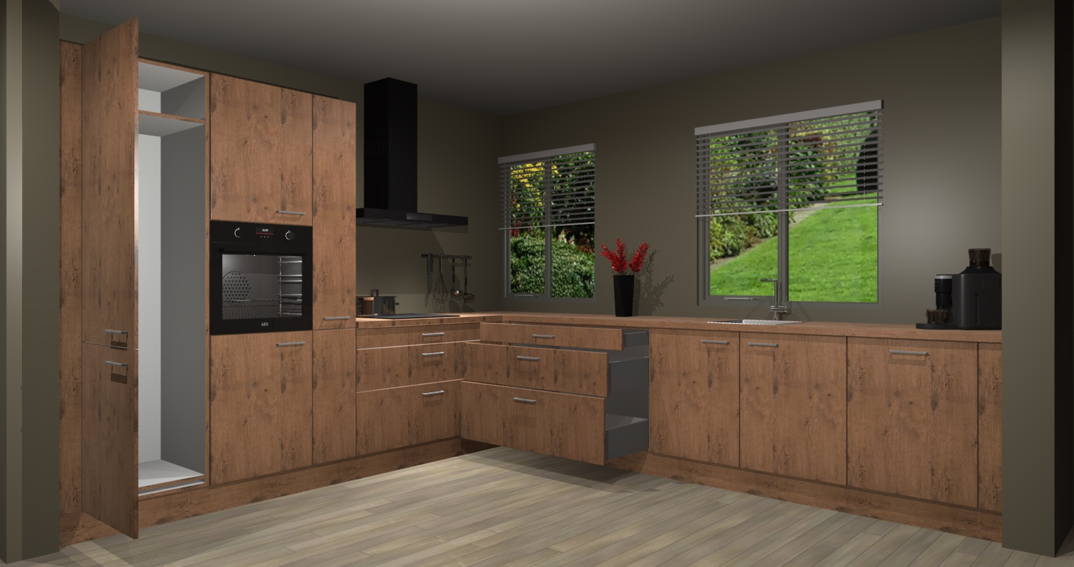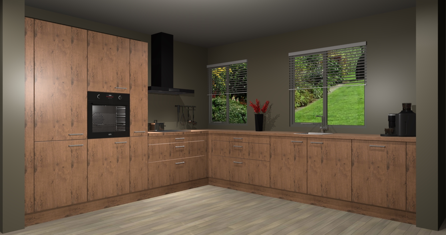Welkom bij de Astoria Eiken keuken Palermo. Deze prachtige keuken zal de komende jaren het middelpunt van de belangstelling in uw huis zijn. Uitgerust met vijf inbouwapparaten komt u nooit kookgereedschap tekort. Bovendien geeft de warme houtlook elke ruimte een uitnodigende en tijdloze uitstraling.