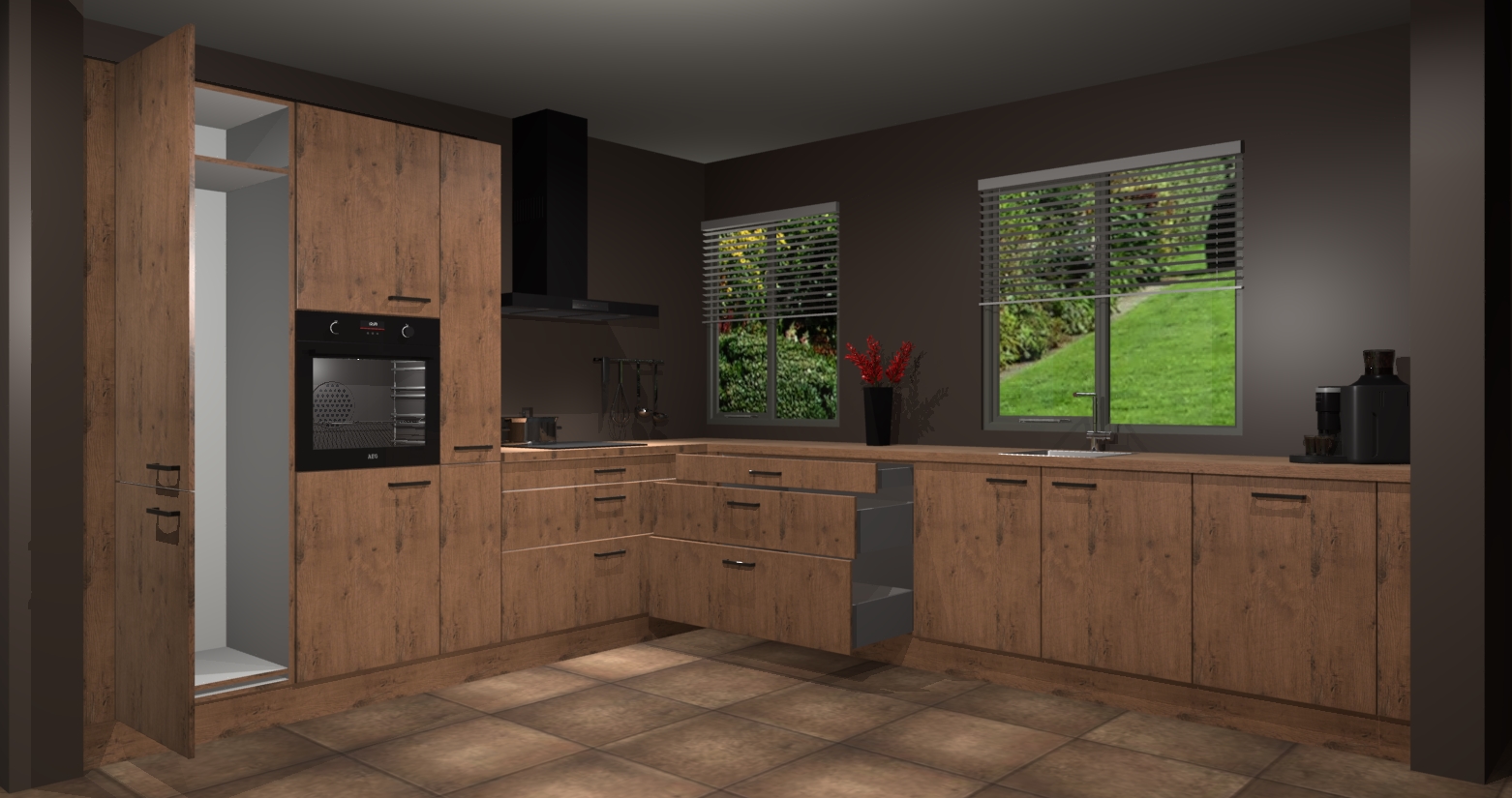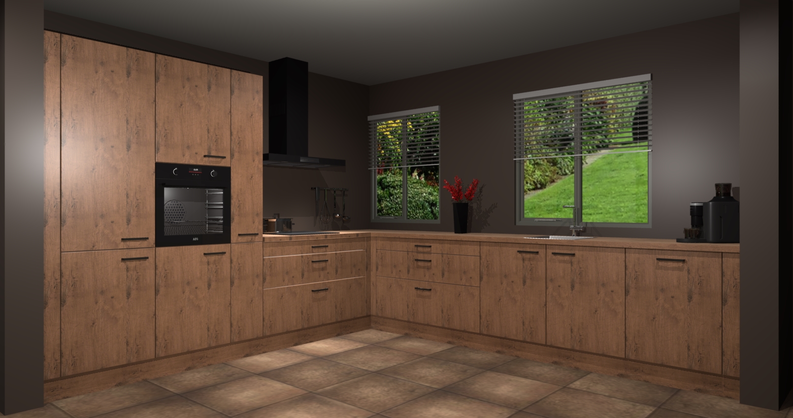 Welkom bij de Astoria Eiken keuken Palermo. Deze prachtige keuken zal de komende jaren het middelpunt van de belangstelling in uw huis zijn. Uitgerust met vijf inbouwapparaten komt u nooit kookgereedschap tekort. Bovendien geeft de warme houtlook elke ruimte een uitnodigende en tijdloze uitstraling.