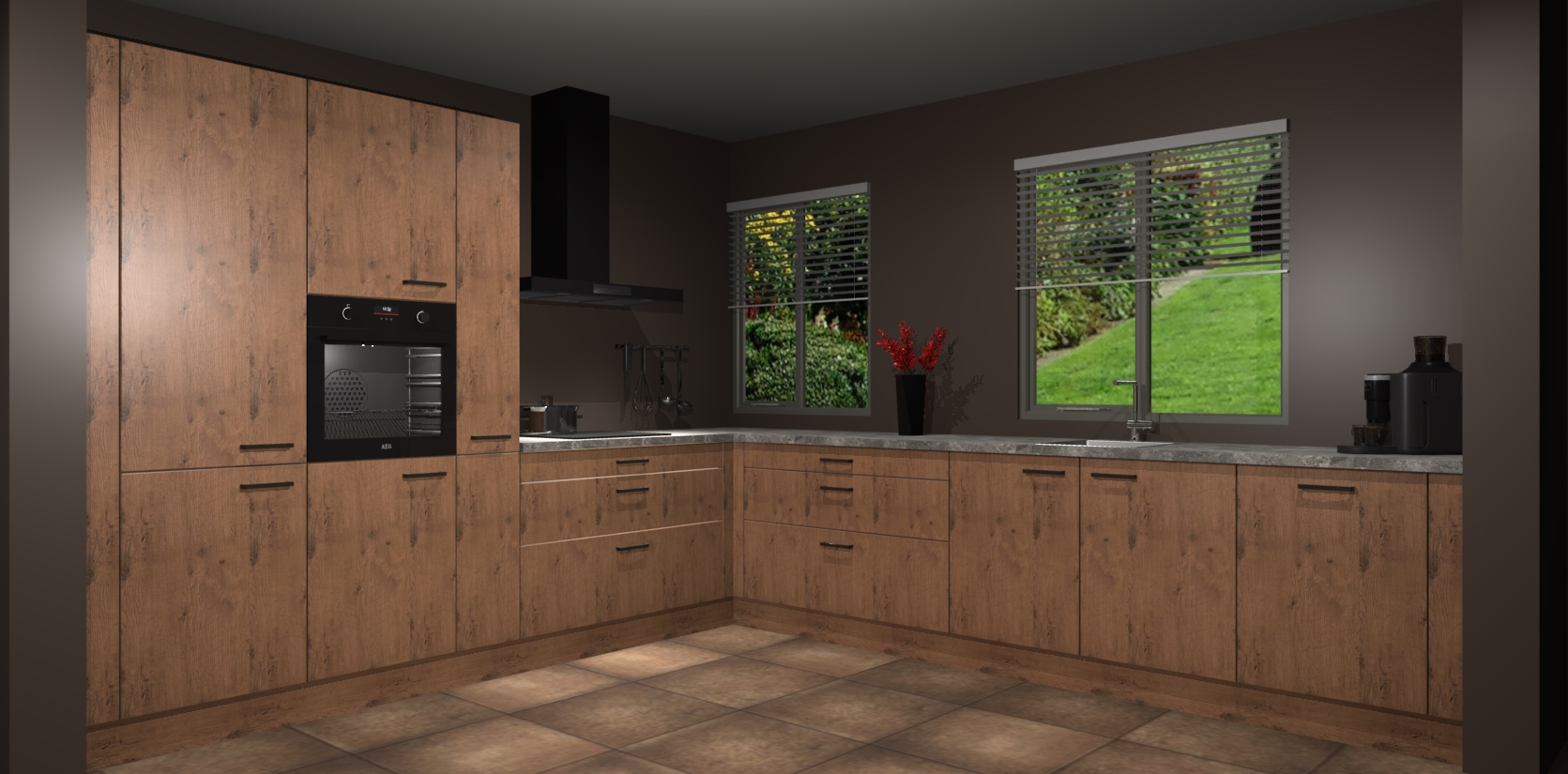 Welkom bij de Astoria Eiken keuken Palermo. Deze prachtige keuken zal de komende jaren het middelpunt van de belangstelling in uw huis zijn. Uitgerust met vijf inbouwapparaten komt u nooit kookgereedschap tekort. Bovendien geeft de warme houtlook elke ruimte een uitnodigende en tijdloze uitstraling.