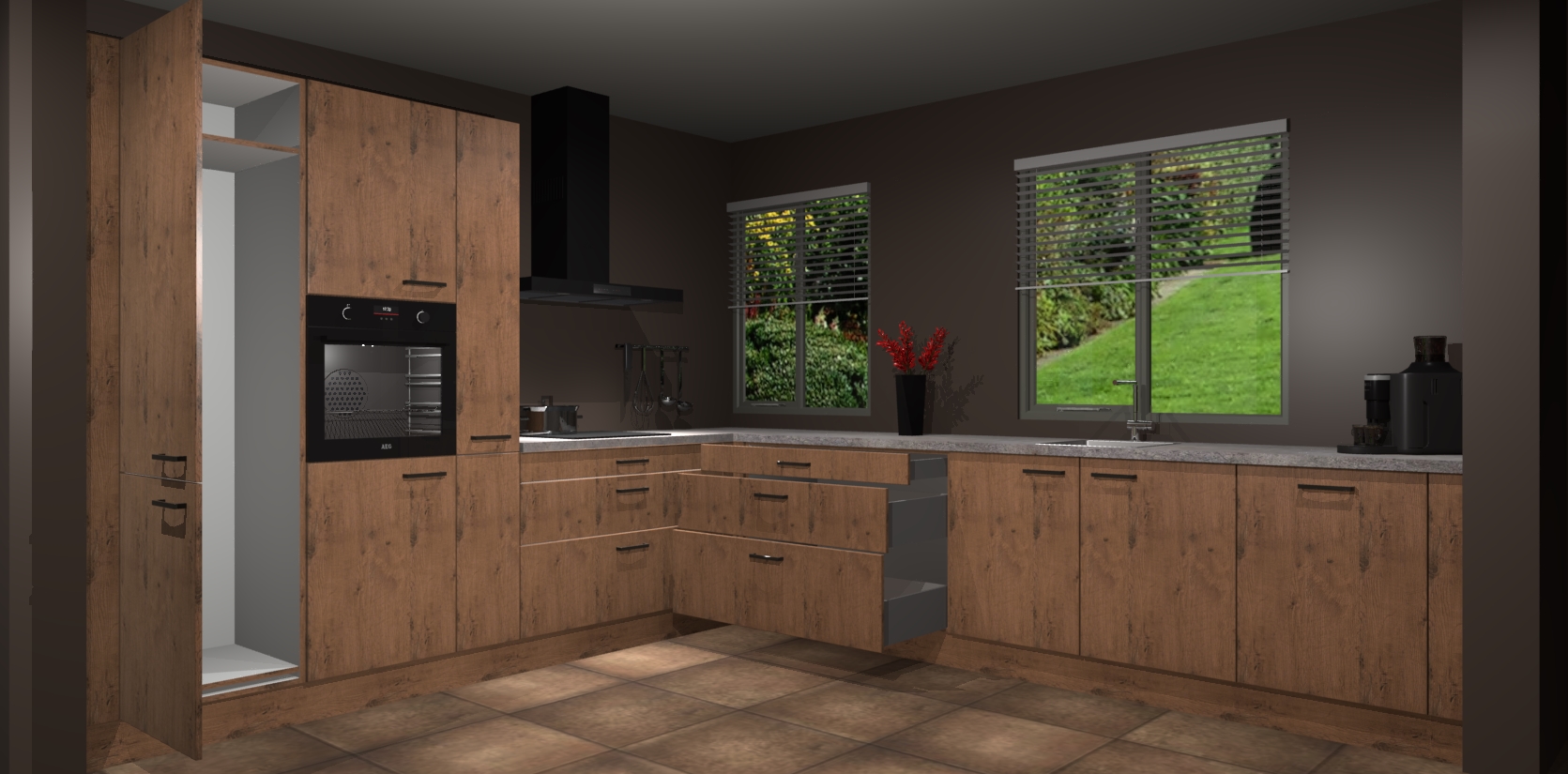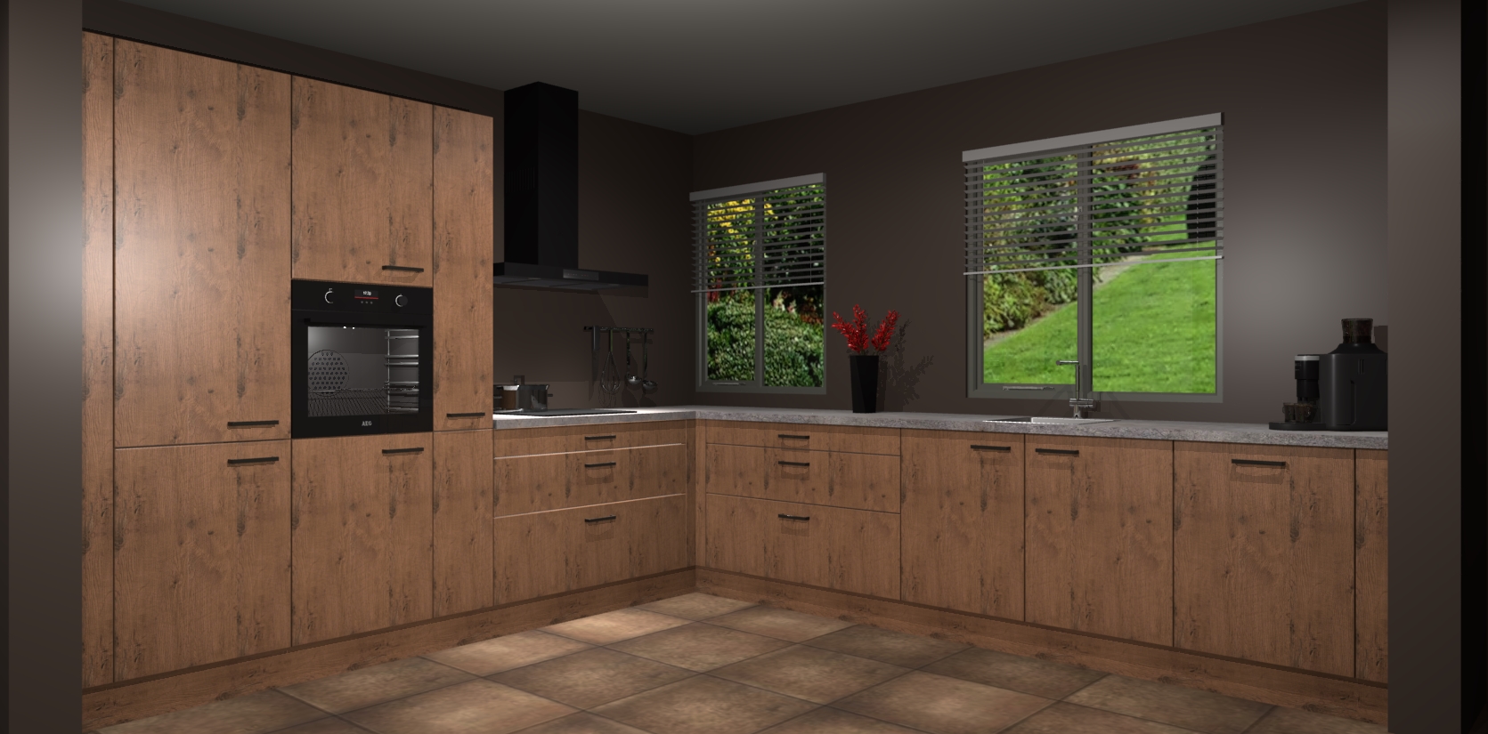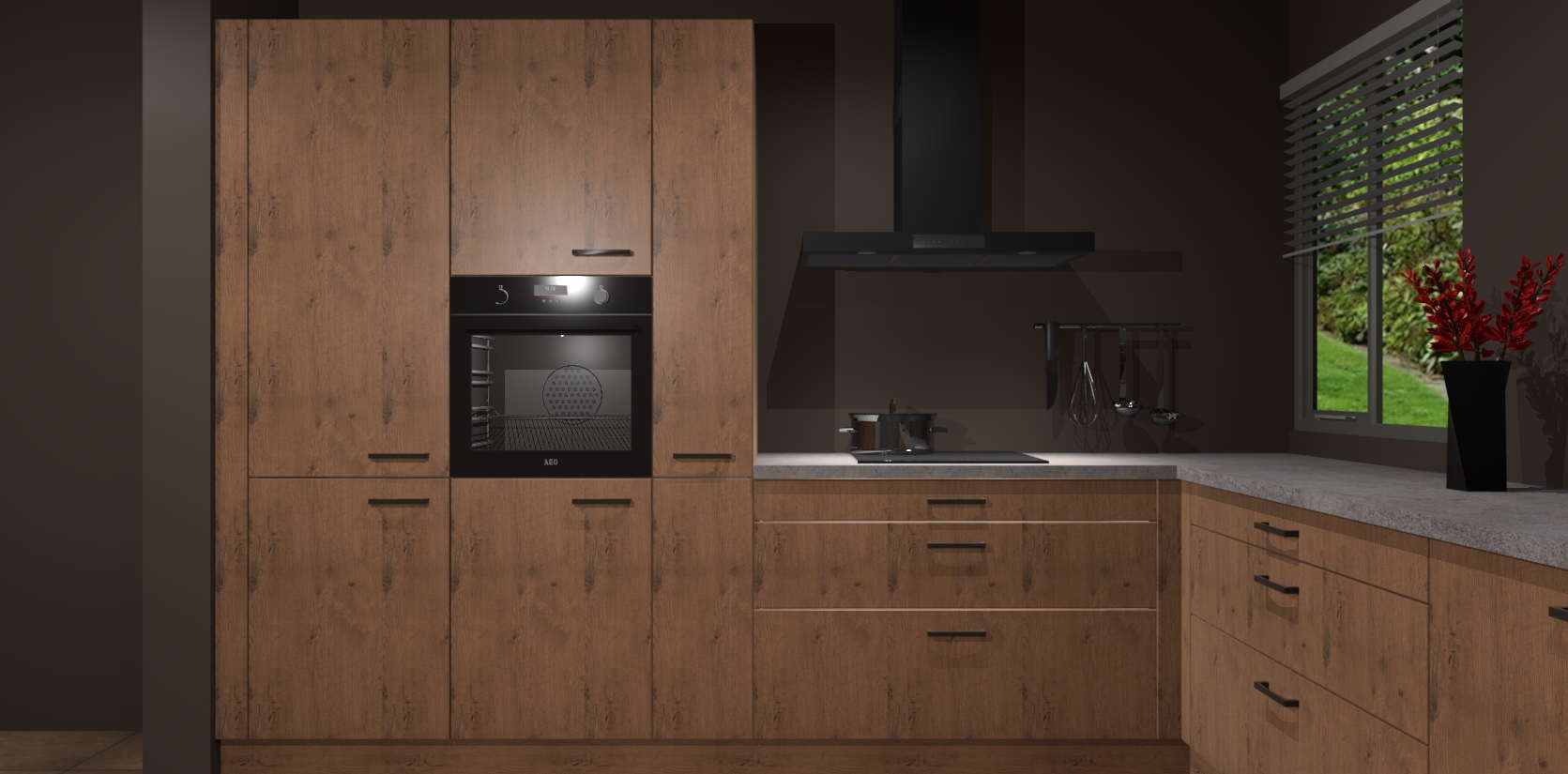 Welkom bij de Astoria Eiken keuken Palermo. Deze prachtige keuken zal de komende jaren het middelpunt van de belangstelling in uw huis zijn. Uitgerust met vijf inbouwapparaten komt u nooit kookgereedschap tekort. Bovendien geeft de warme houtlook elke ruimte een uitnodigende en tijdloze uitstraling.