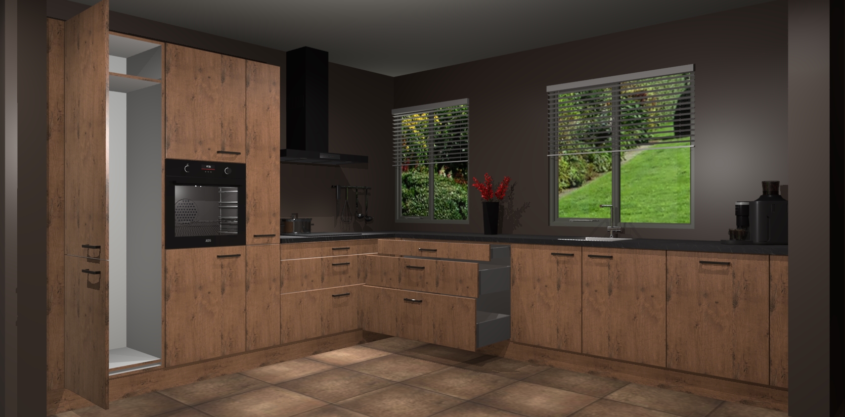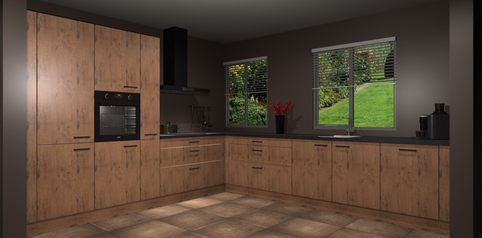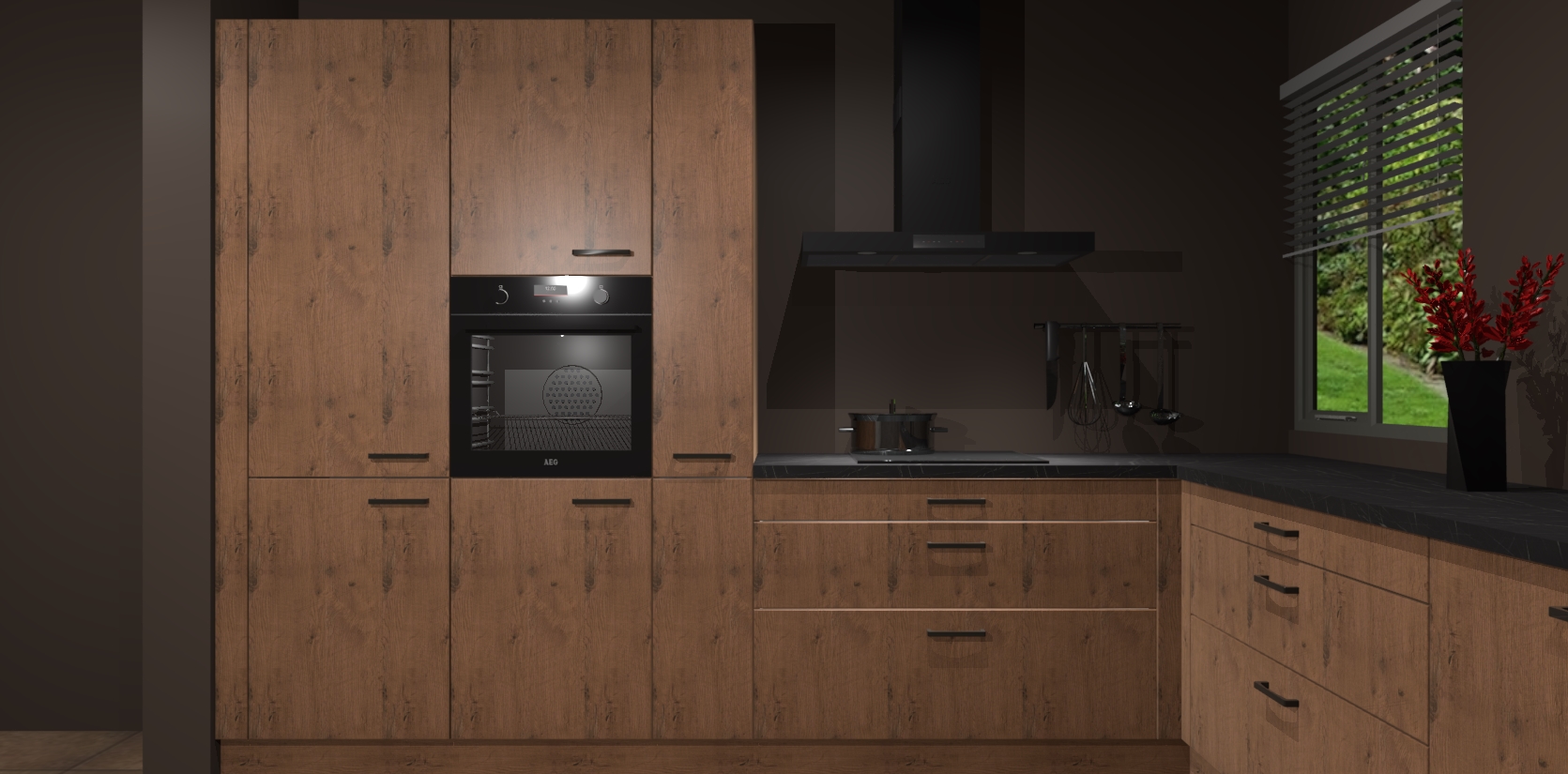 Welkom bij de Astoria Eiken keuken Palermo. Deze prachtige keuken zal de komende jaren het middelpunt van de belangstelling in uw huis zijn. Uitgerust met vijf inbouwapparaten komt u nooit kookgereedschap tekort. Bovendien geeft de warme houtlook elke ruimte een uitnodigende en tijdloze uitstraling.
